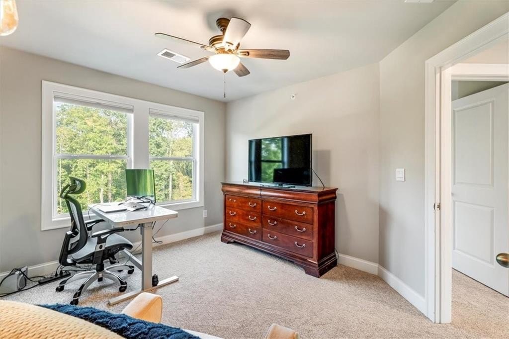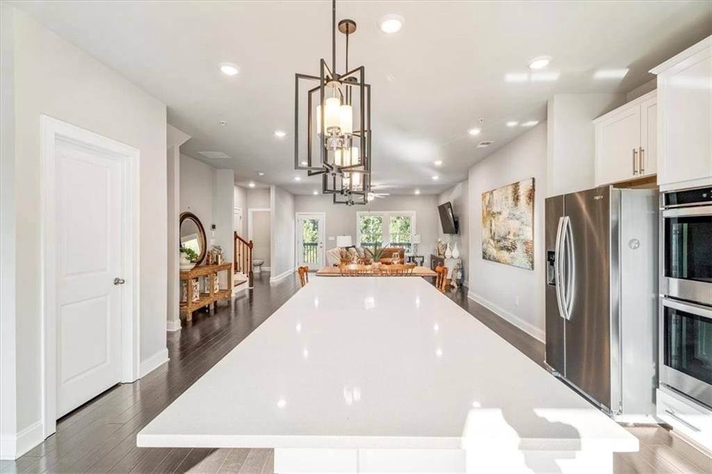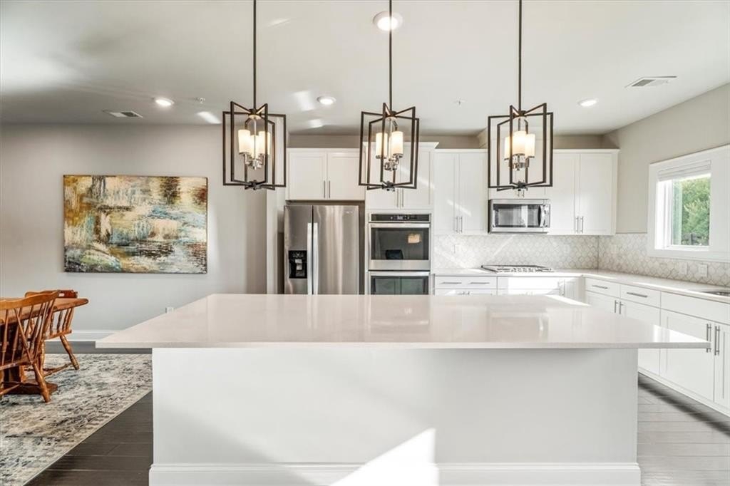 This stunning 3-story townhome is completely move-in ready! Tucked away in a quiet setting yet close to shopping, dining, and commuter routes, it offers the perfect balance of privacy and convenience! Inside, you’ll find an open-concept layout ideal for both daily living and entertaining. The exterior features a crisp design with bold black-and-white contrast, charming front porch, and two covered balconies looking onto the beautiful nature preserve — expanding your living space outdoors. The kitchen shines with modern finishes, an oversized island, double ovens, a gas cooktop, and flows seamlessly into the sitting area, dining space, and family room. Upstairs, the primary suite features a spa-like bath and generous walk-in closet. Secondary bedrooms are roomy and versatile! The finished lower level adds even more flexibility—whether you need a media room, playroom, or fitness space. Added bonuses: BRAND NEW CARPET on the third level and FRESHLY PAINTED INTERIOR!! With low-maintenance living in a well-kept community and the peace of mind that comes with a newer build, this home truly checks every box. Enjoy resort-style community perks like scenic walking trails, a sparkling pool, and the convenience to downtown Woodstock!