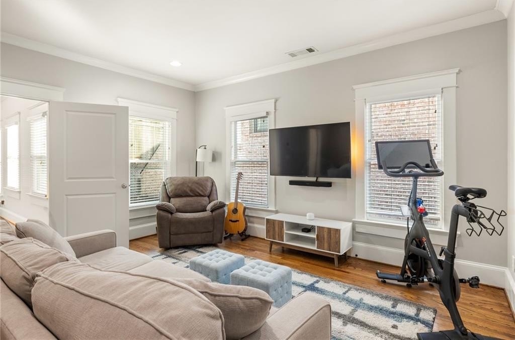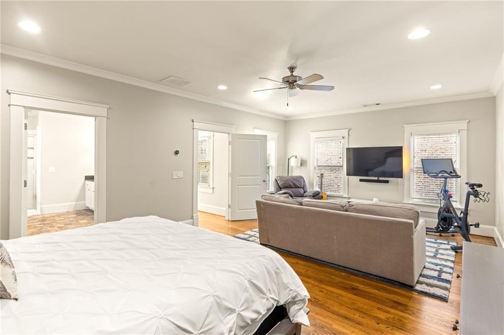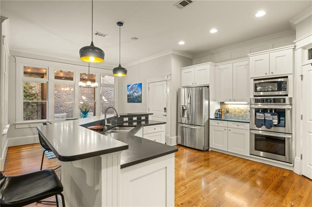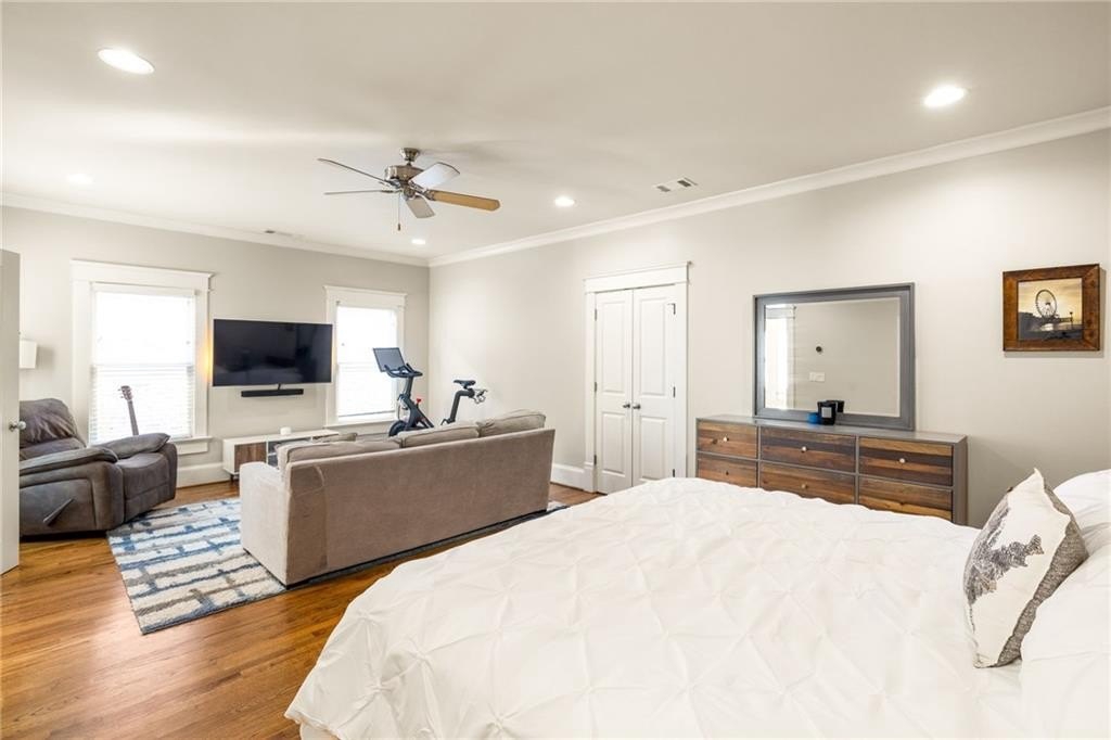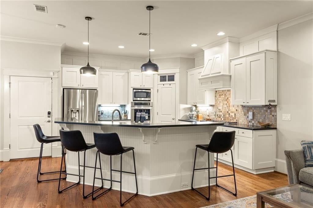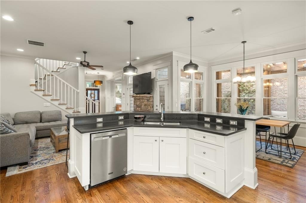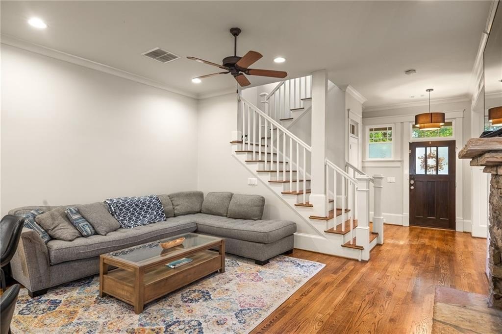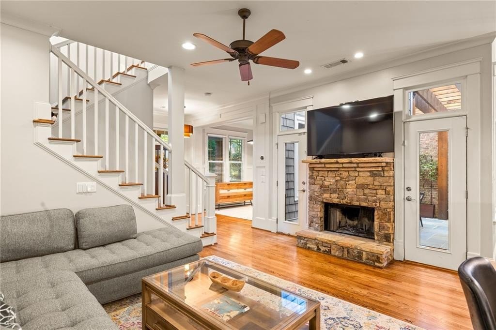 Set on one of Lake Claire’s most charming streets, this Sutherland Place home is an everyday escape where style, comfort, and effortless living meet. The main level welcomes gatherings with a bright open kitchen that flows into dining and living spaces, anchored by a gas fireplace - perfect for weekend brunches, cozy movie nights, or casual evenings with friends. Step outside to your private courtyard designed for summer grilling, al fresco dinners, and long nights under twinkling lights. A flexible space on the main level provides room for a dedicated office, library, or quiet sitting area. Upstairs, the oversized primary suite is a true retreat. Curl up with a book in the sitting area, decompress in the spa-like bath with dual vanities, soaking tub, and tiled shower, then step into an expansive walk-in closet where every outfit has its perfect place. Two additional bedrooms with en-suite baths offer comfort and flexibility for guests, a home gym, or a creative studio. A dedicated laundry room with a utility sink and ample storage makes weekly chores simple. Fresh paint, designer lighting, and clean modern finishes create a polished backdrop throughout, while a two-car garage and community-maintained grounds make life effortless. Zoned for Mary Lin Elementary, enjoy easy strolls to Lake Claire Park, Lake Claire pool, the PATH, and Pullman Yards. Picture morning coffee on the porch, sunset drinks in the courtyard, weekend gatherings with friends, and quiet nights in your private suite.