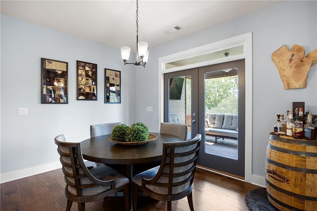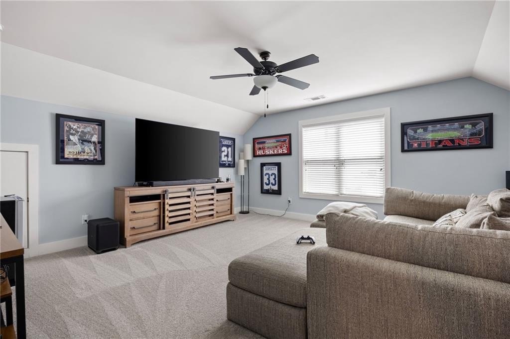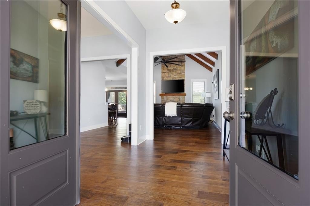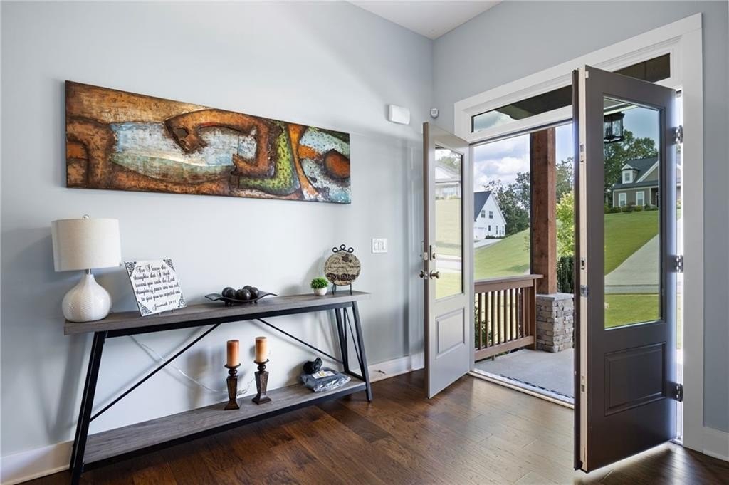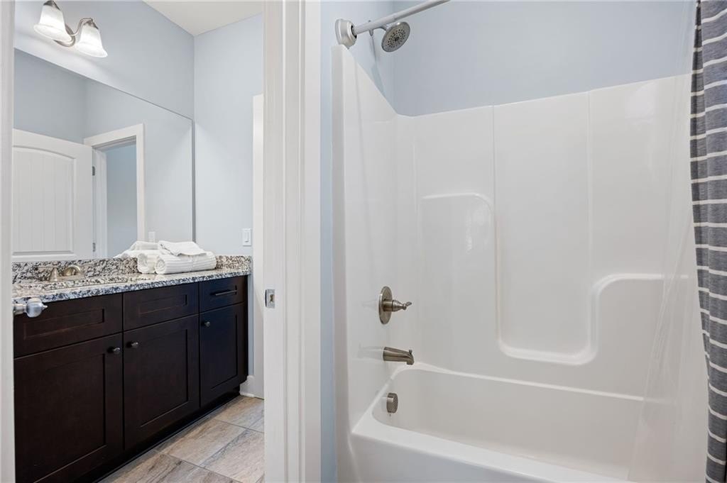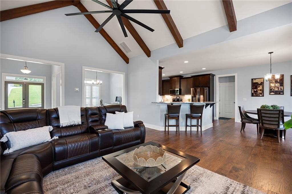 Better Than New with Stunning Views! This beautifully designed Modern Craftsman home offers the perfect blend of charm and contemporary comfort, featuring a striking multi-texture exterior with stone, board and batten, and shake-style siding. A welcoming front porch with stone and cedar accents leads to a double-door entry that opens into a thoughtfully designed open-concept main level. Inside, enjoy vaulted beamed ceilings, a cozy stone-surround fireplace, hardwood floors throughout, and 4-inch plantation shutters for a touch of elegance. The spacious kitchen boasts granite countertops, a breakfast bar, stainless steel appliances, updated stained cabinetry, recessed lighting, and a bright breakfast area. Step through double doors to a screened-in porch with beautifully stained beadboard ceiling, ceiling fan, and TV mount—perfect for relaxing or entertaining. The adjacent deck offers additional outdoor living space to enjoy the breathtaking views. The split bedroom floor plan ensures privacy, with the primary suite thoughtfully placed to take full advantage of the scenery. The spa-like primary bathroom includes a double vanity and an oversized walk-in shower with double entry, ceiling-mount rain shower, and a wall-mounted shower head. Two additional bedrooms on the main level share a full bath, and a half bath adds extra convenience. A dedicated laundry room with cabinetry and a mudroom off the garage enhance everyday functionality. Upstairs, you'll find a spacious fourth bedroom or bonus room complete with its own full bath and attic storage. The huge unfinished basement is already stubbed for a bathroom and kitchen, ready for your customization. Step outside to the extended concrete patio—an ideal space for outdoor entertaining. Less than 3 miles from 1-75! Everything is 3 years young!
