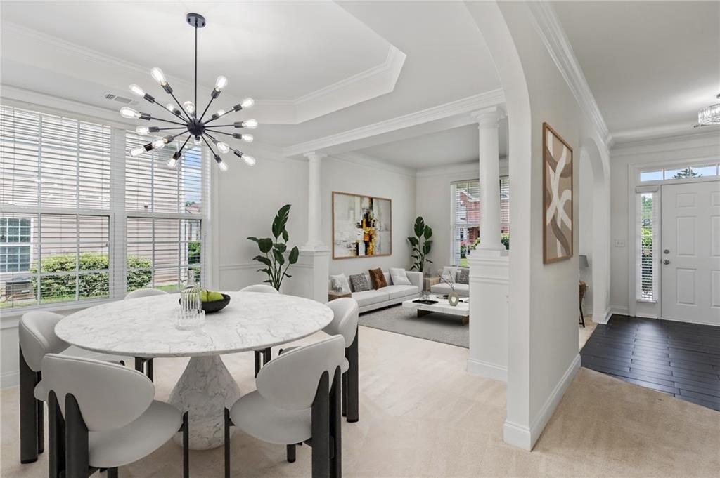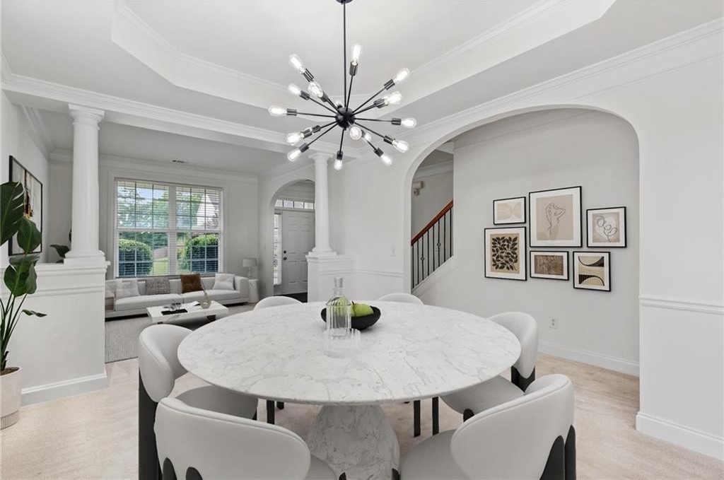 Gracefully positioned on a premier corner lot, this elegantly transformed 4- bedroom, 3.5-bathroom residence offers a lifestyle of sophistication, comfort, and light. With a freshly painted exterior and interior, a new roof installed in 2021, and tons of other upgrades, every element of this home has been elevated to reflect refined, move-in-ready luxury. From the moment you step inside, you are greeted by soaring light-filled spaces and thoughtfully designed interiors. The formal living and dining rooms are adorned with updated designer lighting and abundant natural light, creating an ambiance of timeless elegance and warmth. At the heart of the home is the chef’s kitchen