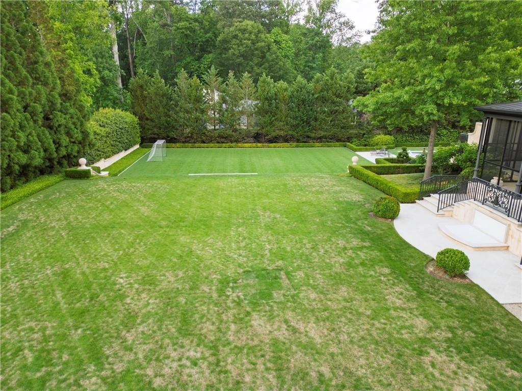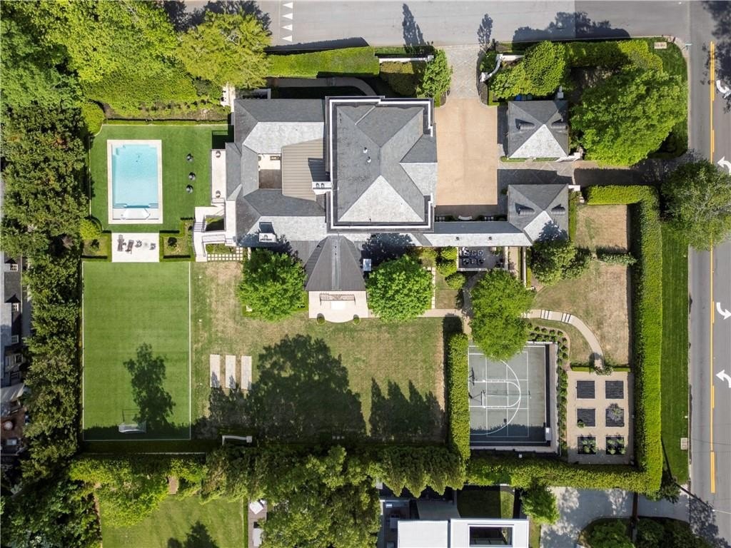 The private grounds spanning 1.3 meticulously maintained acres thoughtfully designed by Land Plus following the acquisition of the adjacent lot, display an idyllic and secluded sanctuary. Large screened patios overlook a verdant lawn that transitions into a turf soccer field. Hidden gems are a pickleball court with an integrated half-court basketball setup, as well as flourishing vegetable and herb gardens, and a newly installed 50-foot pool, heated and cooled for year-round enjoyment.