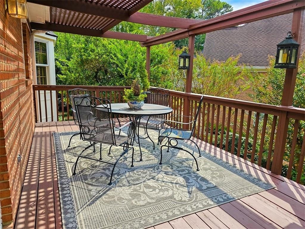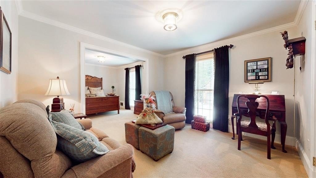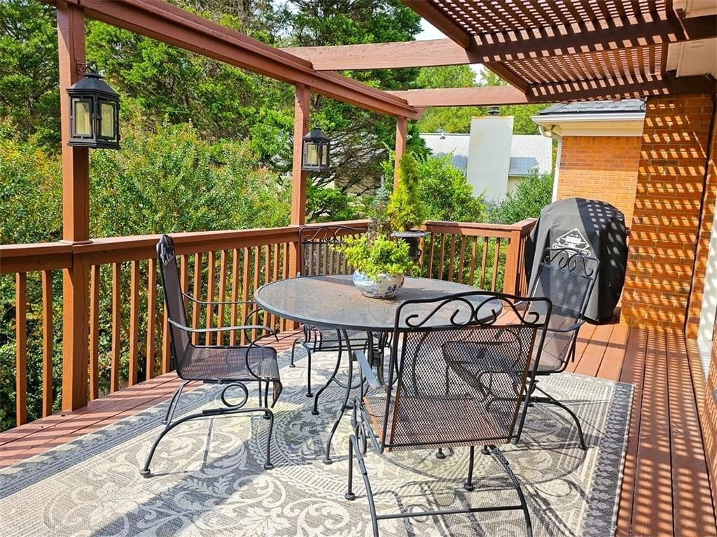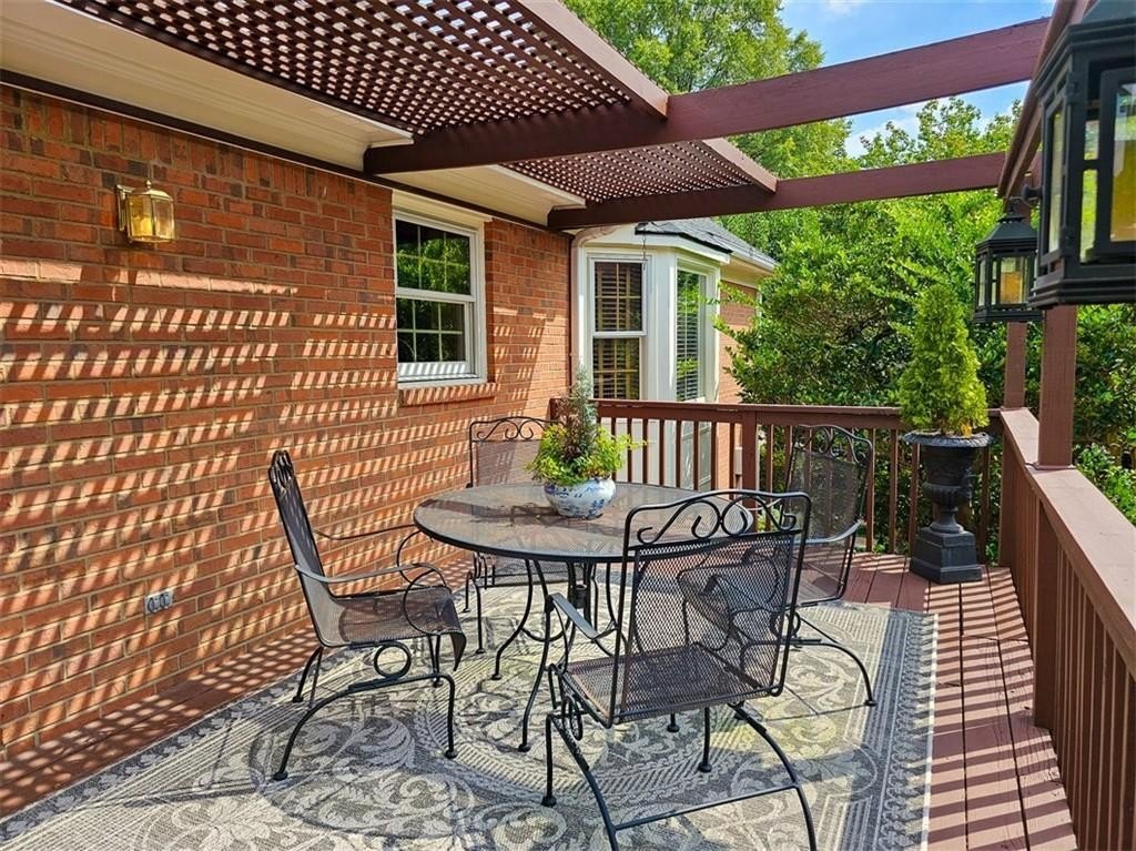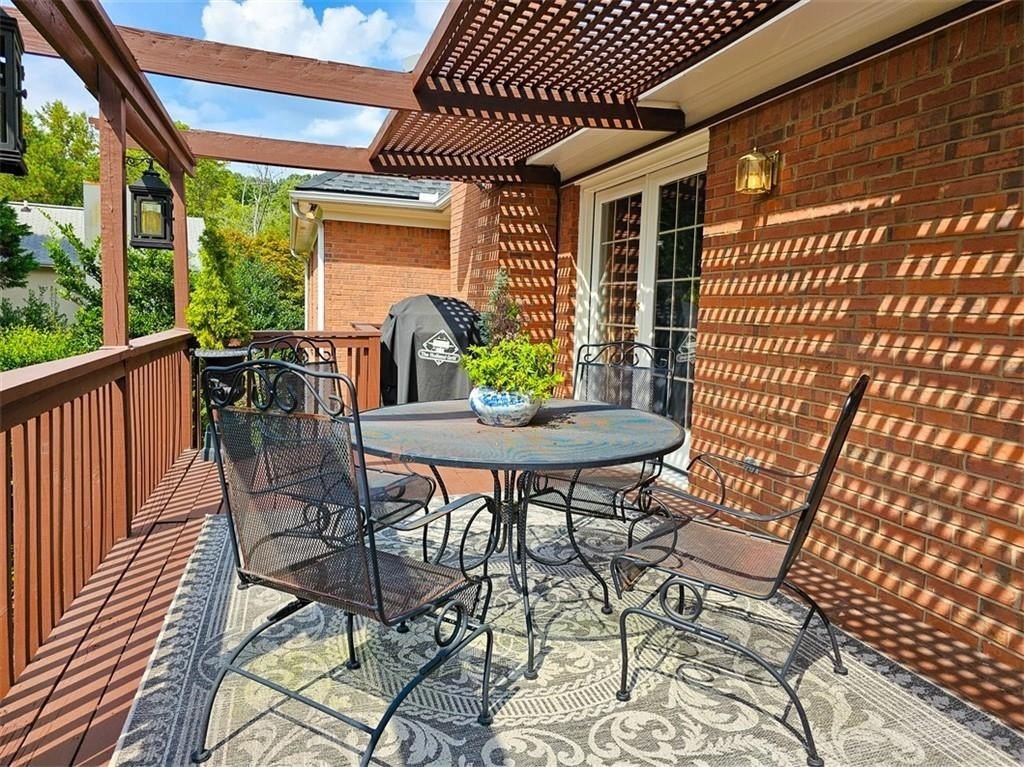 Check out the 3D virtual tour! Sophistication and elegance abound in this beautifully appointed brick home sitting on a beautifully landscaped corner lot in the peaceful and walkable cul-de-sac neighborhood of Heritage Hills. The main floor offers a variety of living spaces, including a private office off the foyer, a sun-drenched, wood paneled great room with gleaming hardwoods, a brick fireplace, and French doors leading to a pergola-covered deck. The renovated kitchen boasts a 24” built-in Thermador column refrigerator and separate 24” Thermador column freezer, stainless steel appliances, granite countertops, TV above range, a bay window breakfast area, and an adjoining formal dining room—perfect for entertaining. The spacious main-level primary suite includes a cozy sitting area and an ensuite bath renovated by Design Galleria including heated marble floors, separate marble shower and large soaking tub with air bath and TV connection. A second main-floor full bath adds convenience. The main floor also includes another generously sized bedroom with its own oversized sitting room. The daylight finished lower level is a true in-law suite, featuring a kitchenette, full bath, three bedrooms, living and dining areas, a bonus workout room, and walk-out access to the patio and backyard. New roof August 2025. Very convenient to Emory/CDC/CHOA/VA, Medlock Park and The Path, as well as many retail and restaurant options, Downtown Decatur, and major roads.