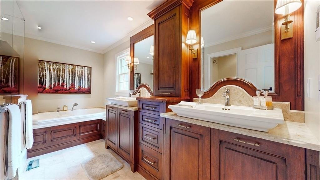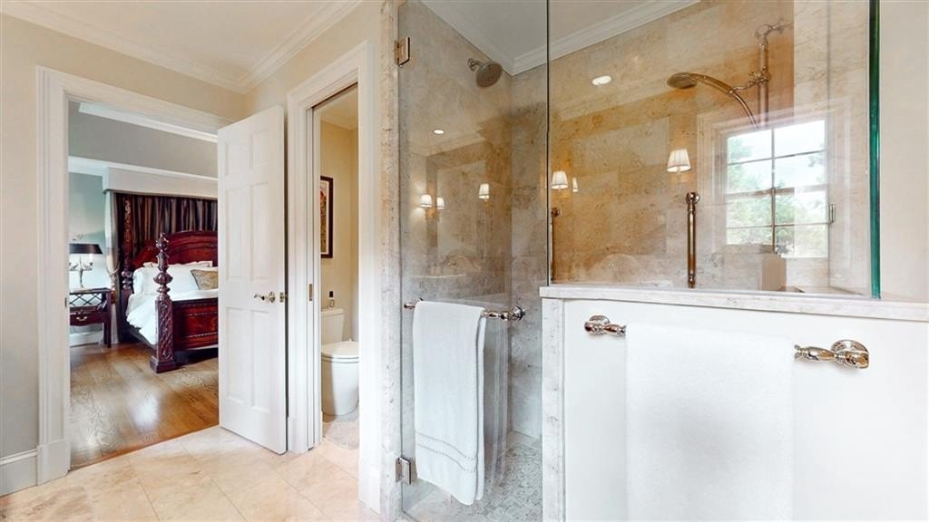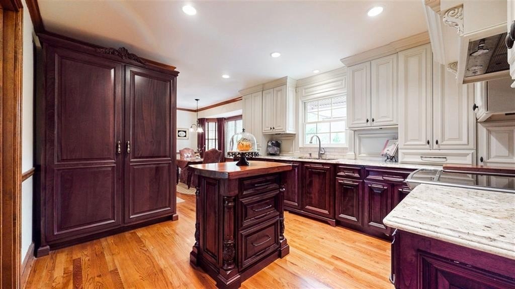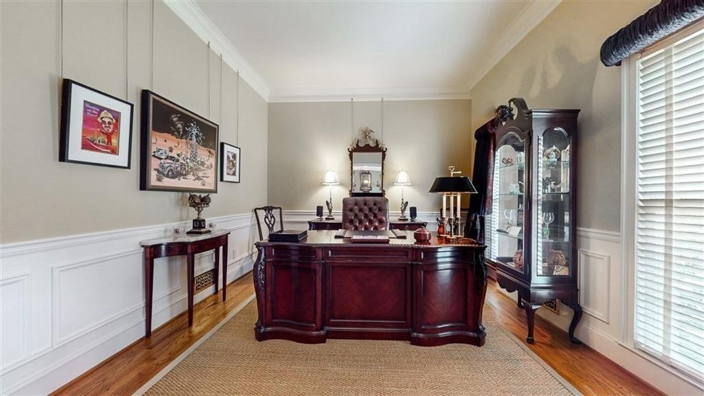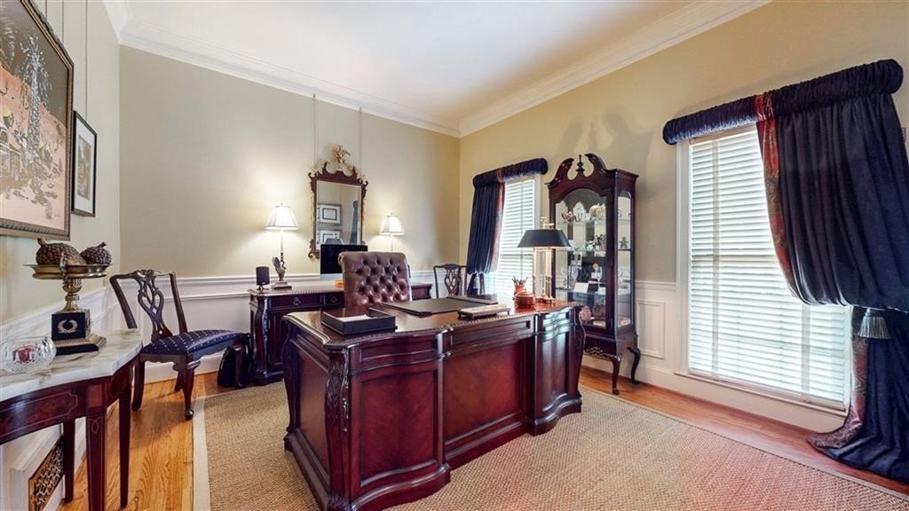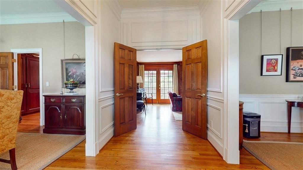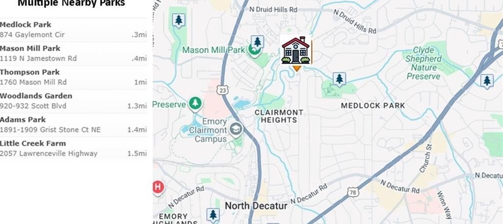 Check out the 3D virtual tour! Sophistication and elegance abound in this beautifully appointed brick home sitting on a beautifully landscaped corner lot in the peaceful and walkable cul-de-sac neighborhood of Heritage Hills. The main floor offers a variety of living spaces, including a private office off the foyer, a sun-drenched, wood paneled great room with gleaming hardwoods, a brick fireplace, and French doors leading to a pergola-covered deck. The renovated kitchen boasts a 24” built-in Thermador column refrigerator and separate 24” Thermador column freezer, stainless steel appliances, granite countertops, TV above range, a bay window breakfast area, and an adjoining formal dining room—perfect for entertaining. The spacious main-level primary suite includes a cozy sitting area and an ensuite bath renovated by Design Galleria including heated marble floors, separate marble shower and large soaking tub with air bath and TV connection. A second main-floor full bath adds convenience. The main floor also includes another generously sized bedroom with its own oversized sitting room. The daylight finished lower level is a true in-law suite, featuring a kitchenette, full bath, three bedrooms, living and dining areas, a bonus workout room, and walk-out access to the patio and backyard. New roof August 2025. Very convenient to Emory/CDC/CHOA/VA, Medlock Park and The Path, as well as many retail and restaurant options, Downtown Decatur, and major roads.