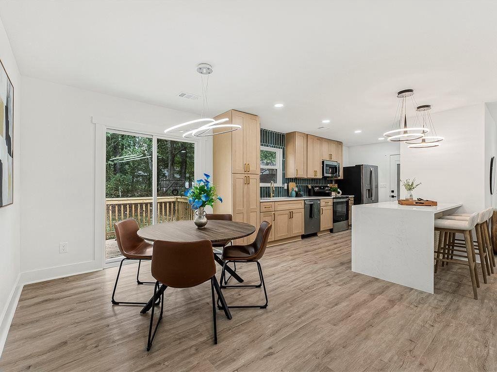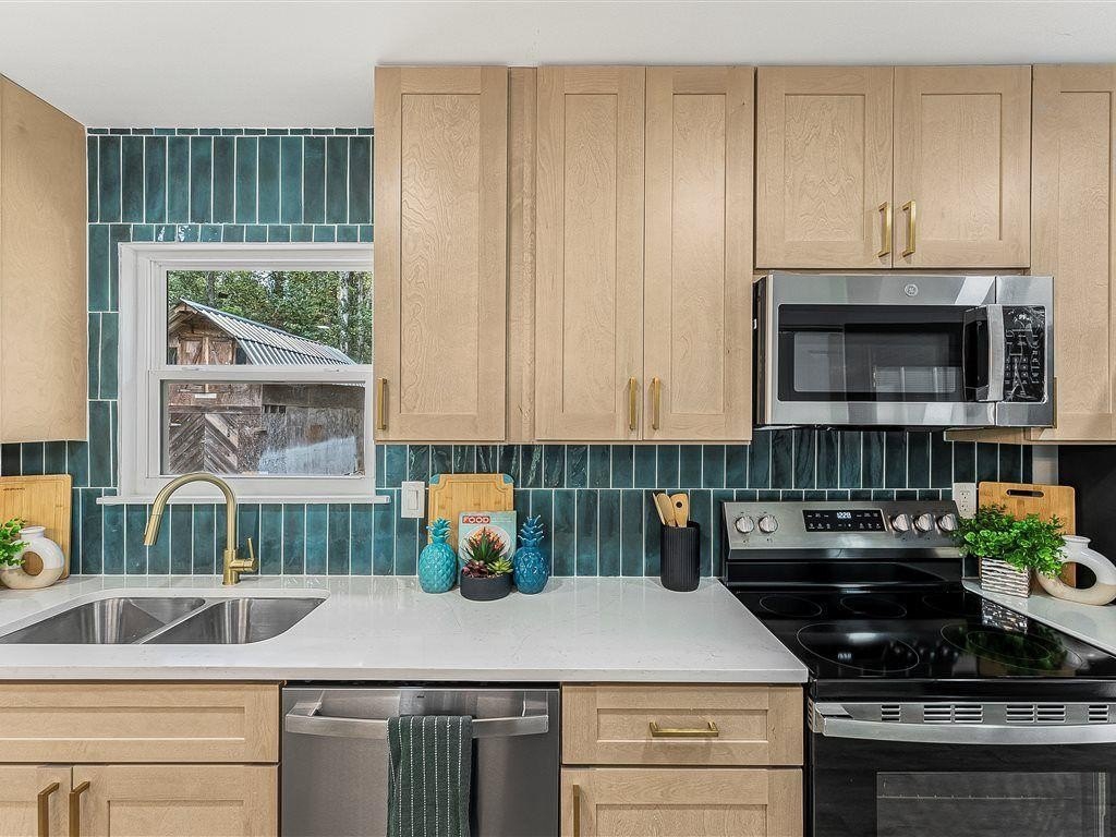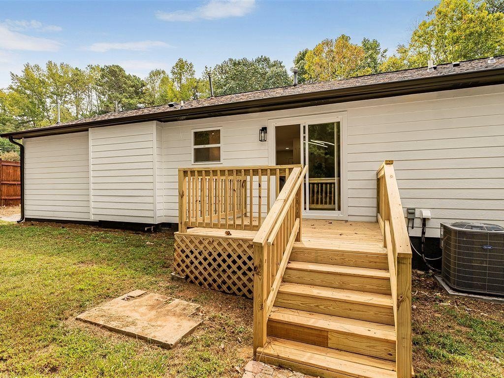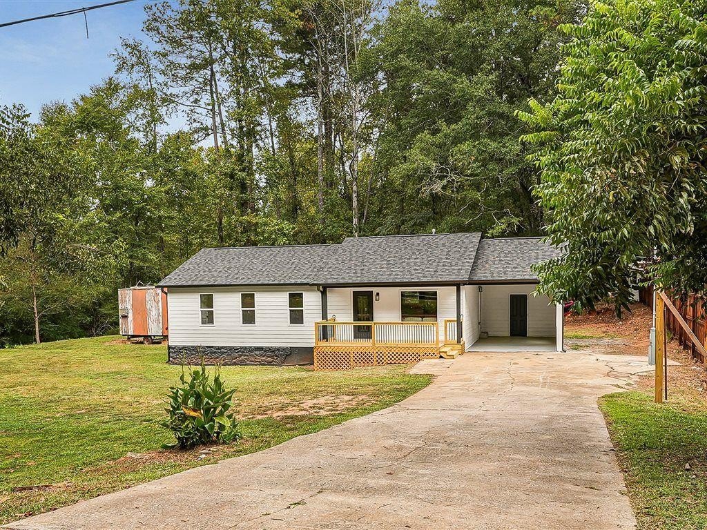 Welcome to this newly remodeled ranch featuring a brand-new roof and HVAC, 3 bedrooms, and 2 bathrooms. Designed with both comfort and style in mind, the home features new flooring throughout, beautifully updated tile bathrooms, and an open-concept kitchen with quartz countertops extended for seating and a clear view into the living room. A dedicated laundry room adds convenience, while the back deck overlooks a spacious, cleared backyard—ideal for creating your own outdoor retreat. Located just minutes from I-85, this home offers easy access to Hartsfield-Jackson Airport, shopping, dining, and entertainment, while still providing a quiet neighborhood feel. Move-in-ready and thoughtfully updated, this home is the perfect blend of modern upgrades and everyday comfort.