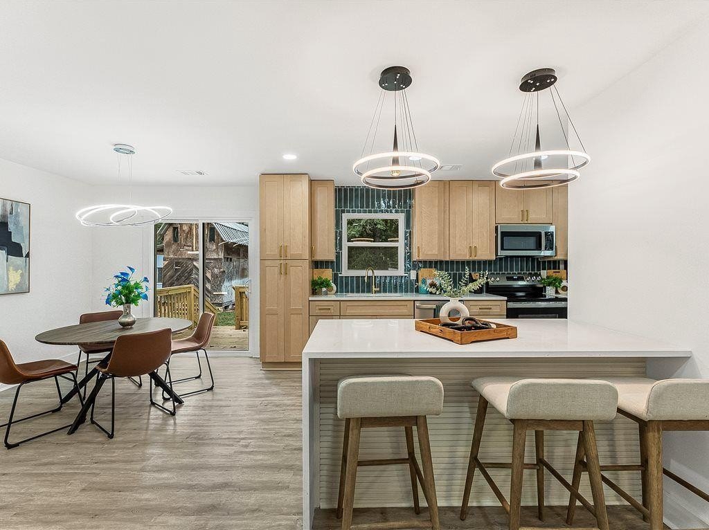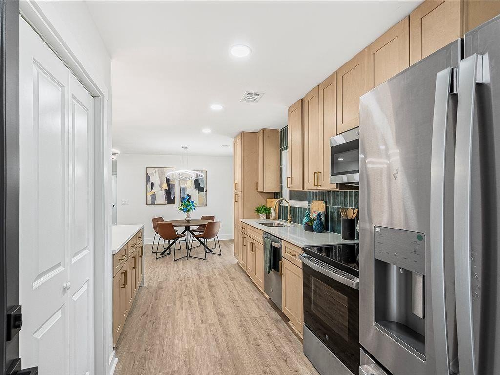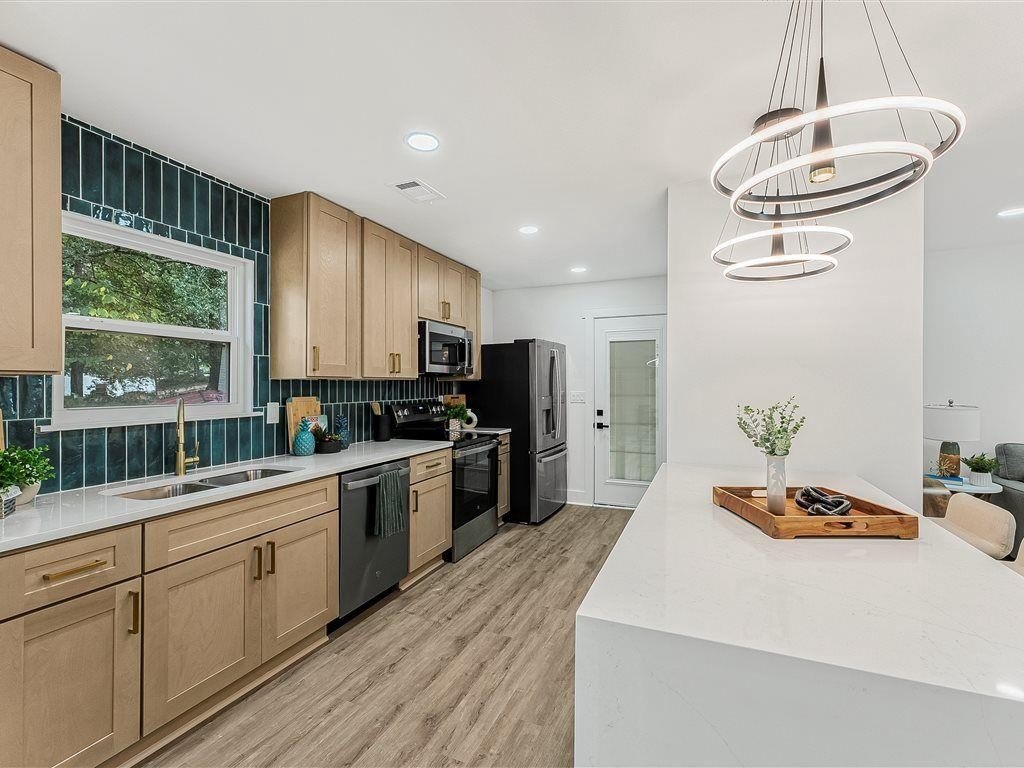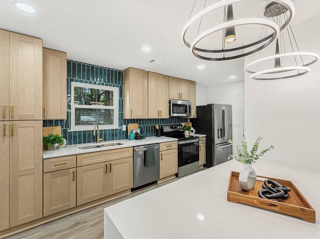 Welcome to this newly remodeled ranch featuring a brand-new roof and HVAC, 3 bedrooms, and 2 bathrooms. Designed with both comfort and style in mind, the home features new flooring throughout, beautifully updated tile bathrooms, and an open-concept kitchen with quartz countertops extended for seating and a clear view into the living room. A dedicated laundry room adds convenience, while the back deck overlooks a spacious, cleared backyard—ideal for creating your own outdoor retreat. Located just minutes from I-85, this home offers easy access to Hartsfield-Jackson Airport, shopping, dining, and entertainment, while still providing a quiet neighborhood feel. Move-in-ready and thoughtfully updated, this home is the perfect blend of modern upgrades and everyday comfort.