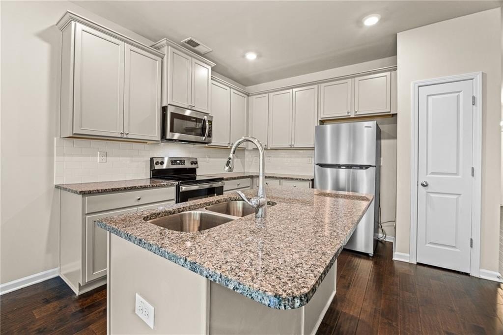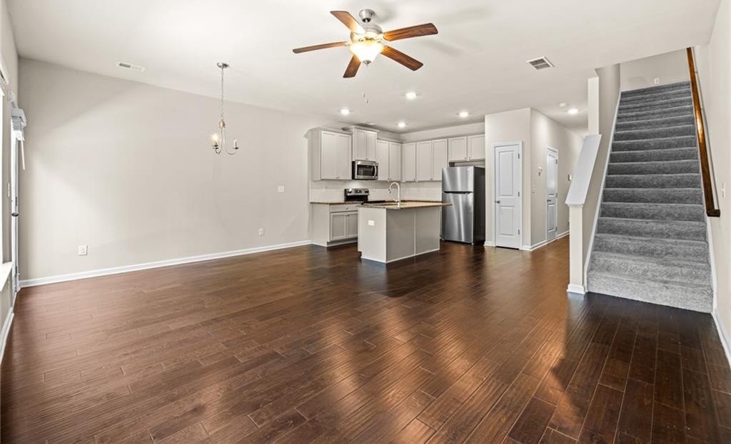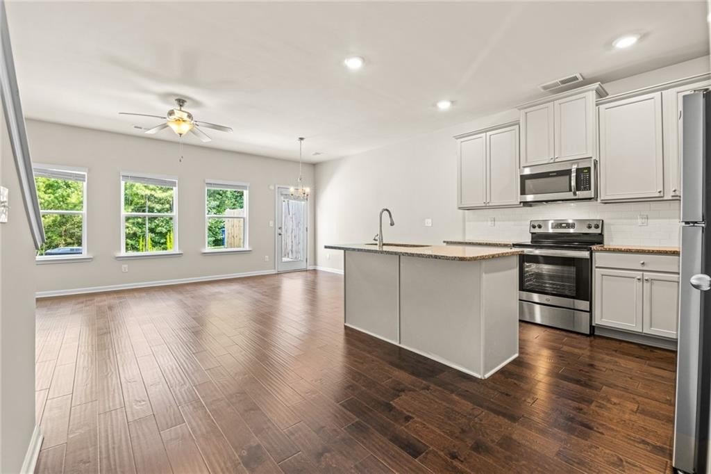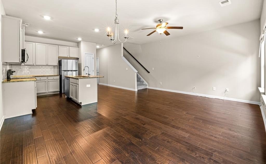 Introducing 3400 Highbury Way. Beautiful 3 bedroom 2.5 bathroom townhome has gorgeous hardwoods and tall ceilings on main floor that elevate this home to another level. Modern kitchen boasts sleek 42' cabinets, granite counters and island. Breakfast area flows effortlessly into the family room which is great for relaxation and entertainment. Spacious primary suite features a spa-like bath with dual vanity and separate shower. Size of bedrooms do not disappoint! Privacy panel separates your yard from your neighbors. Located near Stonecrest Mall, shopping, fine dining, and entertainment.