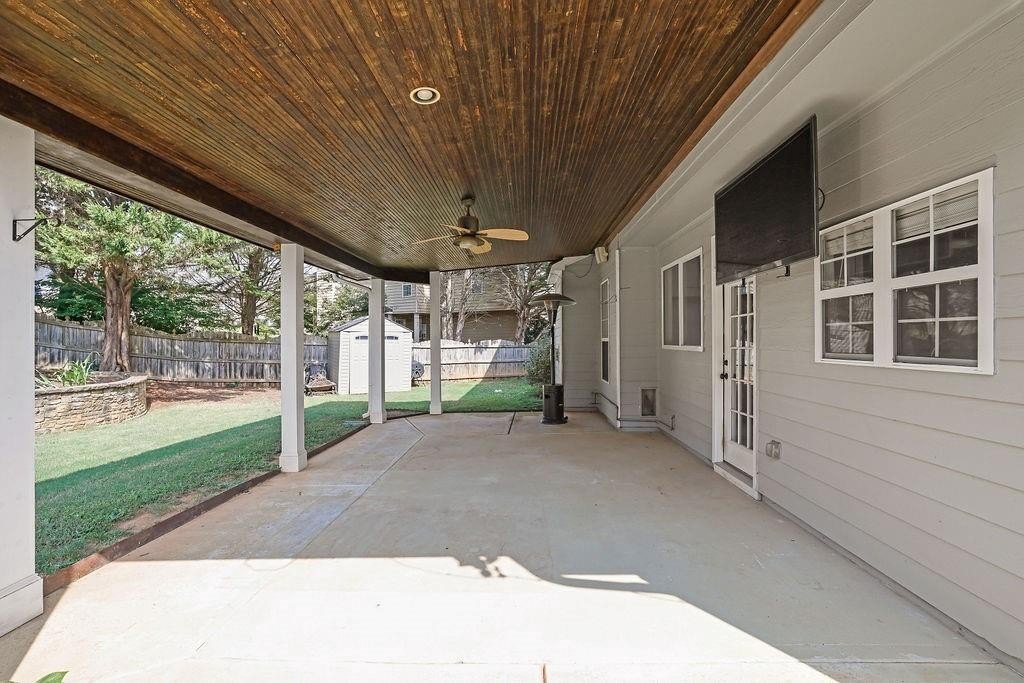 Step outside to the expansive covered back porch, already equipped with a heater and TV setup perfect for cozy fall football nights or year-round entertaining. The spacious backyard adds even more opportunity for outdoor living and play.