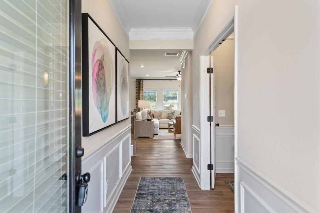 Move in Ready November 2025! The Harrington plan built by Smith Douglas Homes in Victoria Heights! One of our most popular plans! This open concept floorplan offers a seamless flow from room to room. The family room with a gas fireplace, adjoining breakfast area and kitchen ensures a sense of spaciousness and easy interaction between the living spaces. A separate living room for more formal gatherings is just off the main entry foyer. Upgrades include 42" upper cabinets in the kitchen, Quartz counters, tile backsplash and Vinyl Plank flooring on the main level. The covered patio is ideal for outdoor entertaining and the yard can be accessed from the breakfast area. Additional windows were included in the home in the family room and stair landing creating a light-filled home. Ascend the iron rain staircase to the second story where you will discover four bedrooms, including the extremely spacious primary suite that is large enough to accommodate a sitting area. The primary bath features double sinks, a shower and separate garden tub. Both stories have Smith Douglas Homes signature 9ft ceiling heights. Photos representative of plan not of actual home being built. Seller incentives with use of preferred lender