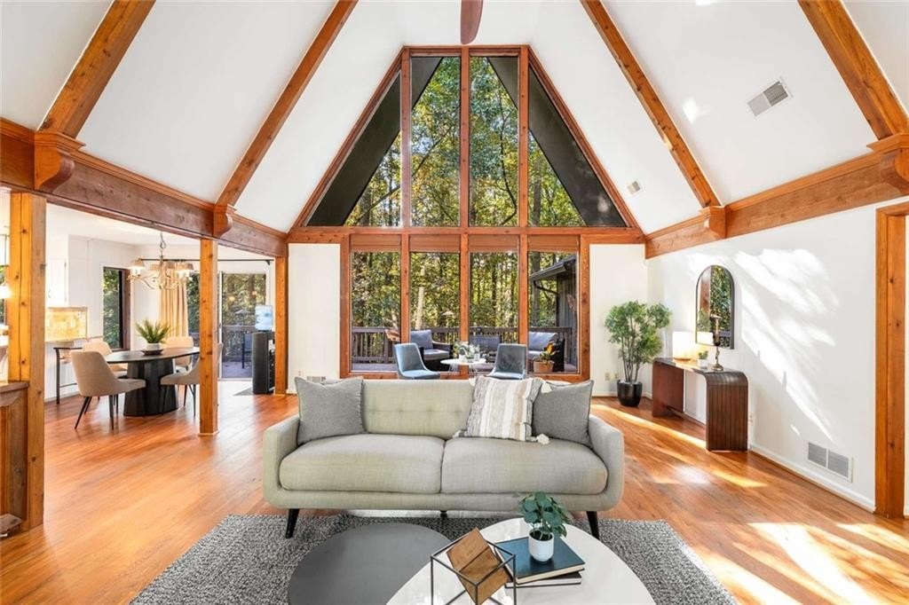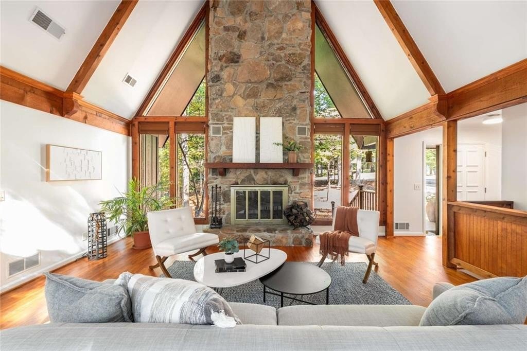 Escape to Lake Lanier in this charming A-Frame waterfront home, complete with a covered slip and private dock, perfectly situated on the desirable “Atlanta side” of the lake—just around the corner from Baldridge Marina and ideal for quick weekend getaways or full-time lakeside living.