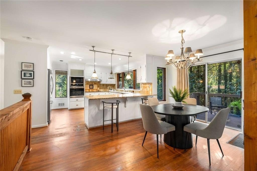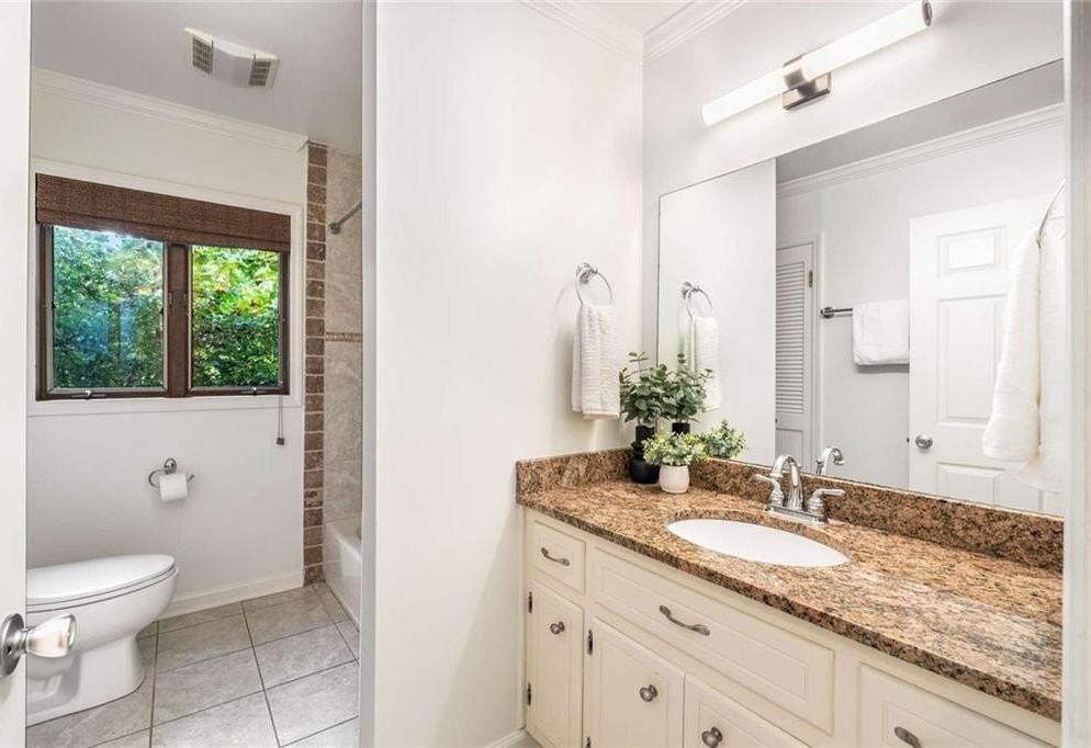 Step inside to the main level and be greeted by soaring two-story ceilings and dramatic windows that flood the family room with natural light, creating a bright and airy atmosphere. Off the foyer, the dining room flows seamlessly into the updated kitchen, featuring new appliances and a breakfast area with direct access to the deck. On the opposite side of the family room, the spacious owner’s suite also opens to the deck, while a secondary bedroom and full bathroom complete the main level.