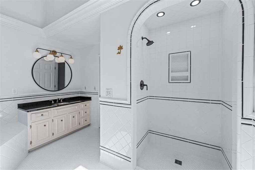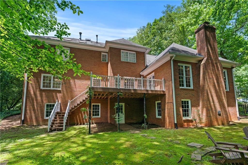 Luxury and timeless elegance define this exquisite all-brick estate nestled in the highly sought-after Old Paper Mill neighborhood. Set on over 0.43 acres of lush landscaped grounds, this home offers a rare and serene retreat. A tranquil stream meanders through the backyard, where a custom fire pit and tree-lined views create an inviting outdoor oasis-perfect for quiet mornings or lively evenings under the stars. Outdoor enthusiasts will love the proximity to Cochran Shoals Trail, just minutes away for walking, running, or biking along the Chattahoochee River. Inside, the grand two-story foyer welcomes you with warmth and sophistication. Refinished hardwood floors flow throughout the main level, complemented by fresh paint and refined brushed bronze finishes. The kitchen, thoughtfully refreshed in recent years, features gleaming granite countertops, stainless steel appliances, and a bright, airy aesthetic centered around a cozy breakfast nook. Formal living and dining rooms offer timeless spaces for entertaining, while a private library with custom built-ins provides a quiet escape. The expansive family room boasts rich wood-paneled walls, a stately fireplace, and seamless connection to the kitchen-ideal for gathering with loved ones. Upstairs, the elegant primary suite is a true retreat, showcasing a vaulted tray ceiling and spa-like bath complete with a skylight, soaking tub, dual vanities, and shower. Three additional oversized bedrooms and two well-appointed baths provide plenty of space for family and guests. The walk-out unfinished basement offers boundless potential-whether you envision a home gym, media room, or guest suite, it's a perfect canvas for your dream expansion. With charming curb appeal, mature trees, and a private, park-like setting, this home blends classic charm with thoughtful updates in a prestigious, established community. Come experience the lifestyle this special property has to offer. Schedule your private tour today!