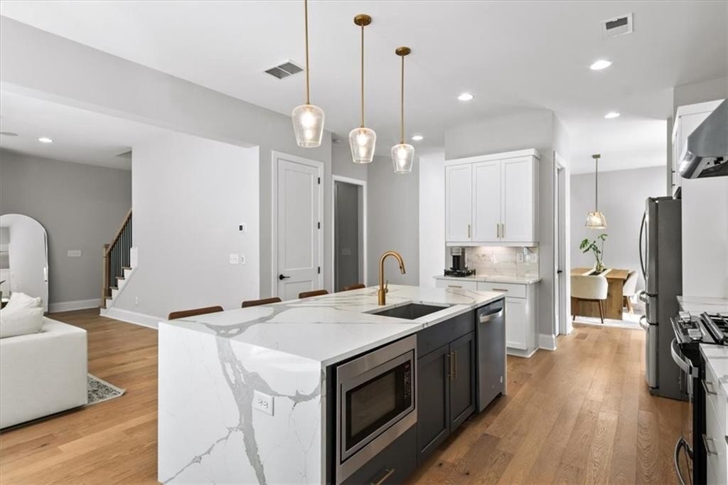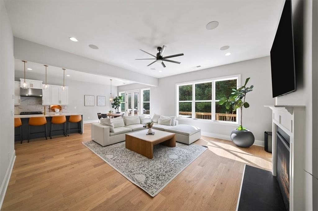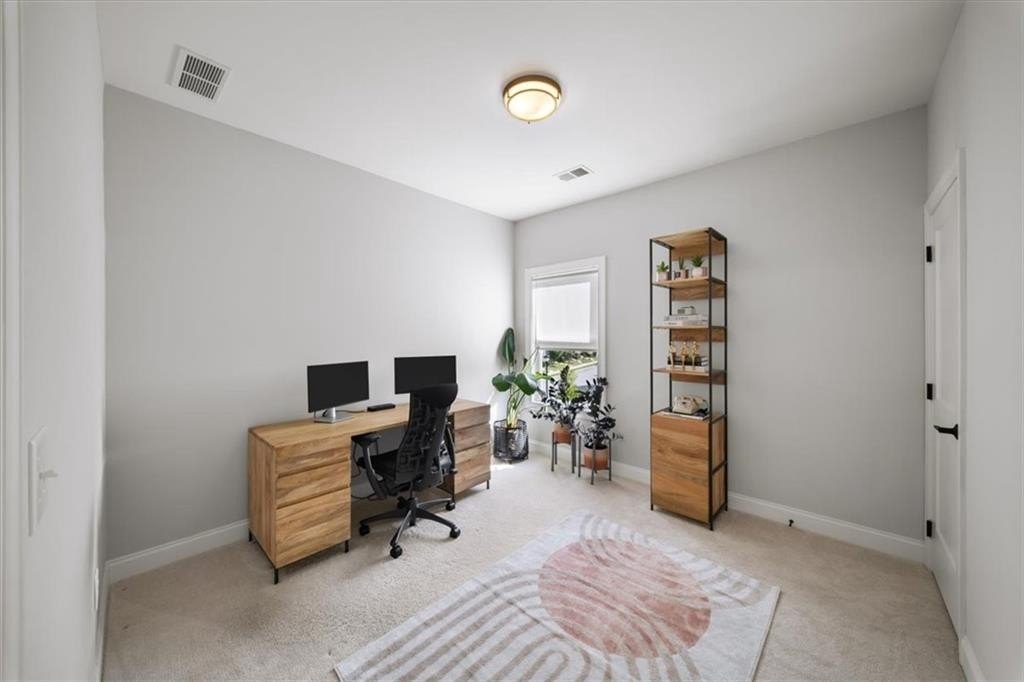 The finished third-floor retreat includes a full living area, bedroom, and bath—ideal for guests, office, or media use. The basement is framed for a living room, bedroom, bath, and storage or space for a potential kitchenette. EV-ready garage, extended rear deck, and a large side yard for pets or play. Steps to the future Proctor Creek Trail, Westside Park, and BeltLine.
