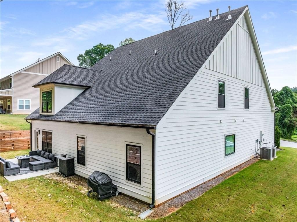 Built in 2022, this custom modern farmhouse style home pairs striking curb appeal with thoughtful design. The exterior features a covered porch, professionally landscaped front yard and a wide driveway leading to the 2-car garage, creating an inviting first impression. Inside, the home offers 4 bedrooms, 3.5 baths, open living space, PLUS a large bonus room AND a dedicated office nook. An impressive two-story foyer welcomes you in, past the formal dining room and butler’s pantry, and into the chef’s kitchen showcasing quartz countertops, large island, stainless appliances, walk-in pantry, wet bar, and breakfast area.. need we go on? The kitchen flows seamlessly into the living room with soaring cathedral ceilings, abundant natural light, and grand fireplace framed by custom built-ins. The main-level primary suite is a private retreat with a spa-inspired bath featuring double vanity, European stand-alone soaking tub, large walk-in shower, and expansive walk-in closet. Also conveniently located on the main level are the full-sized laundry room, powder room for guests, and a mudroom entry from the garage. Upstairs, three spacious bedrooms with walk-in closets are complemented by one full ensuite bath plus additional jack-and-jill bath. Offering even more space and flexible living options are the large bonus room and separate office nook, perfect for a playroom, media lounge, home gym, or study area. Enjoy outdoor living on the front porch overlooking the landscaped lawn or relax and grill out on the private back patio. To top it all off, all systems are only 3 years old, including a tankless water heater for on-demand hot water, and lawn irrigation system. Located on a quiet cul-de-sac in the Golden Acres neighborhood, this home is just minutes from Hartsfield-Jackson Atlanta International Airport (10 minutes), Tyler Perry Studios (15 minutes), and Greenbriar Mall (5 minutes), with quick access to downtown Atlanta and major highways. This nearly new home blends modern charm, flexible living space, and convenience—ready to welcome its next chapter.