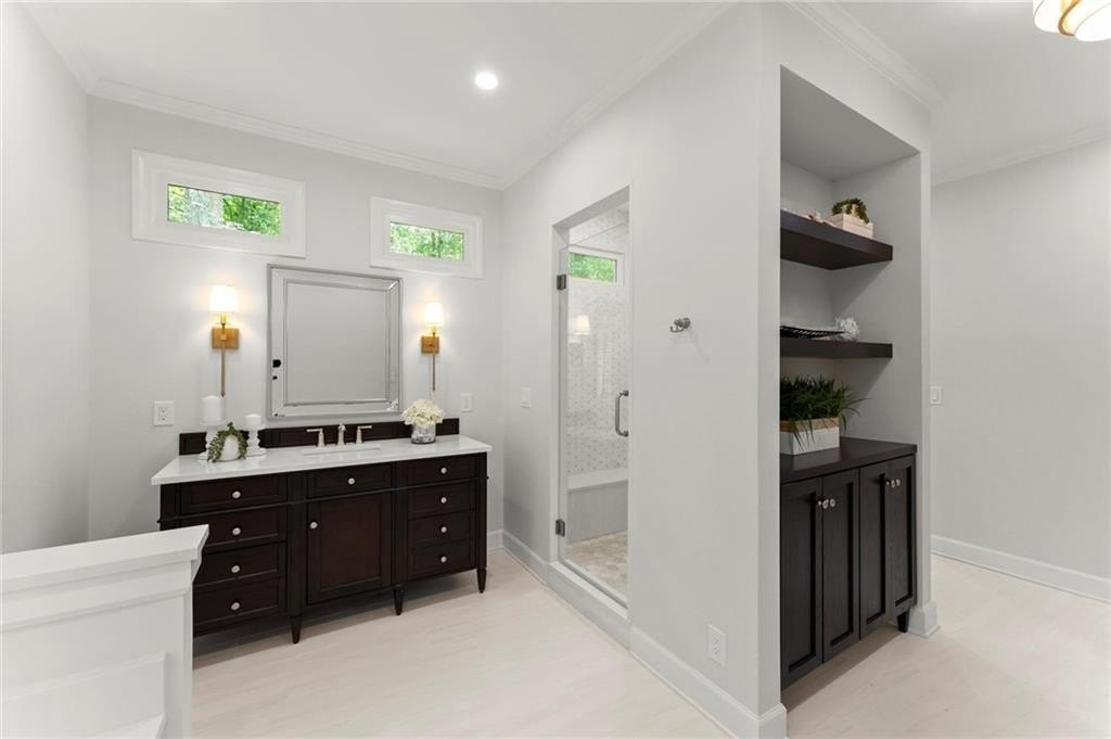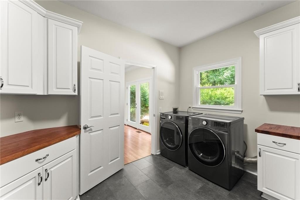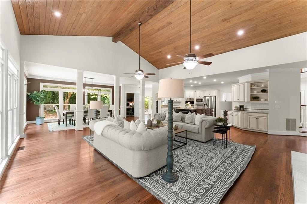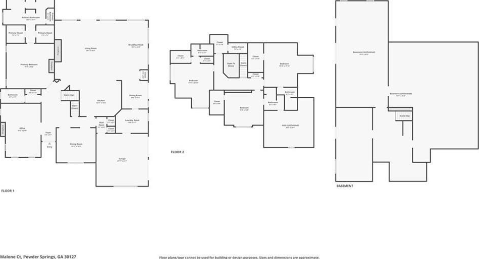 Welcome to 5455 Malone Court, a beautifully updated home nestled in a private Powder Springs cul-de-sac. This timeless estate is thoughtfully designed for multigenerational living, offering a peaceful retreat with space for everyone. The main level is an elegant sanctuary featuring a remodeled primary suite with dual custom closets, a cozy fireplace, and a spa-like bathroom with a soaking tub and walk-through shower. The heart of the home is a stunning great room, where a tongue and groove ceiling with an exposed fir beam and wood-burning fireplace create a warm, inviting atmosphere. The chef’s kitchen is perfect for both everyday meals and entertaining, featuring a large island, stainless steel appliances, double ovens, and more cabinet space than you could ever need! A generous mudroom/laundry room and a dedicated office nook complete this level. Upstairs, three spacious bedrooms, each with its own ensuite bathroom, provide comfort and privacy for family and guests. The unfinished basement offers endless potential, with a garage door and a stubbed bathroom ready for your vision, whether you create separate living quarters, a workshop, or a custom expansion.
