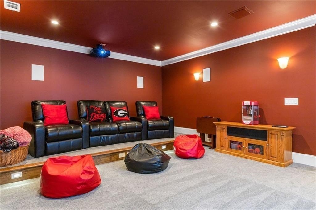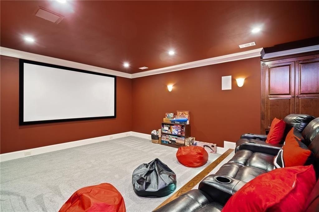 The fully finished terrace level provides endless possibilities for entertainment and relaxation. It includes two guest bedrooms with a shared full bath, an expansive great room with a kitchenette, a dedicated home theater, a home gym, music room, walk-out patio access with an outdoor fireplace and additional unfinished storage space.