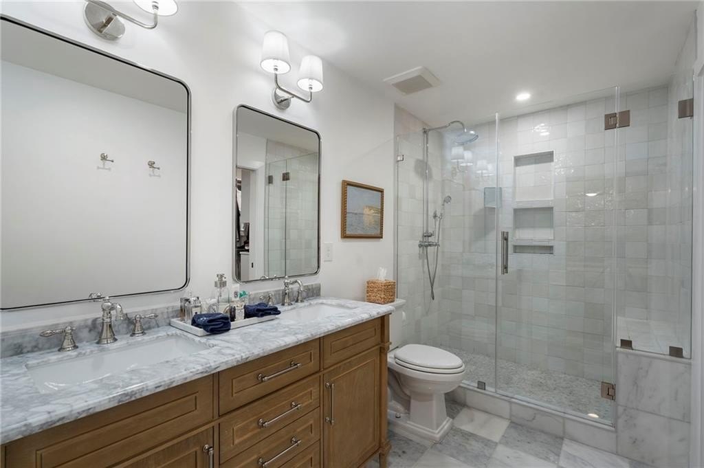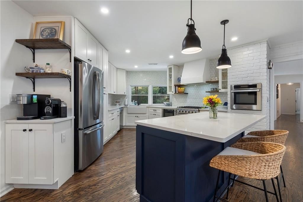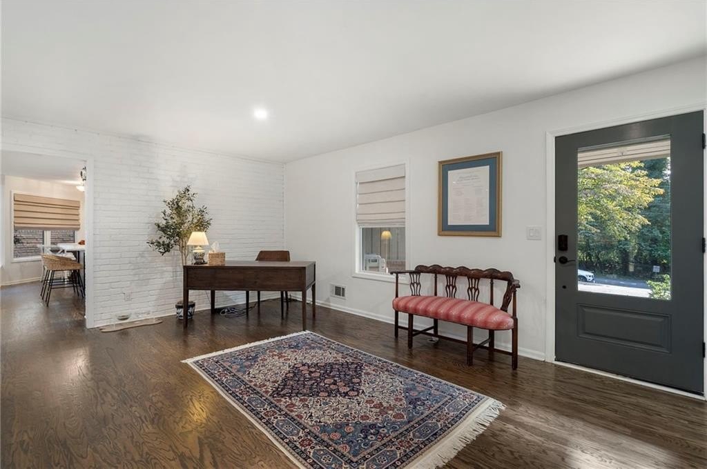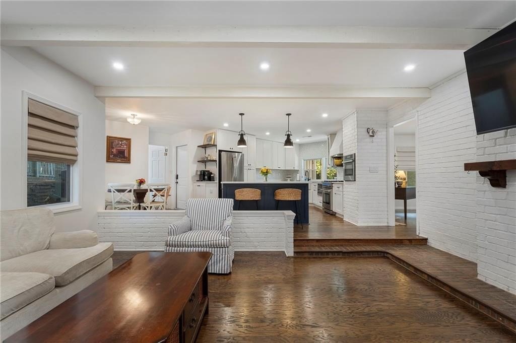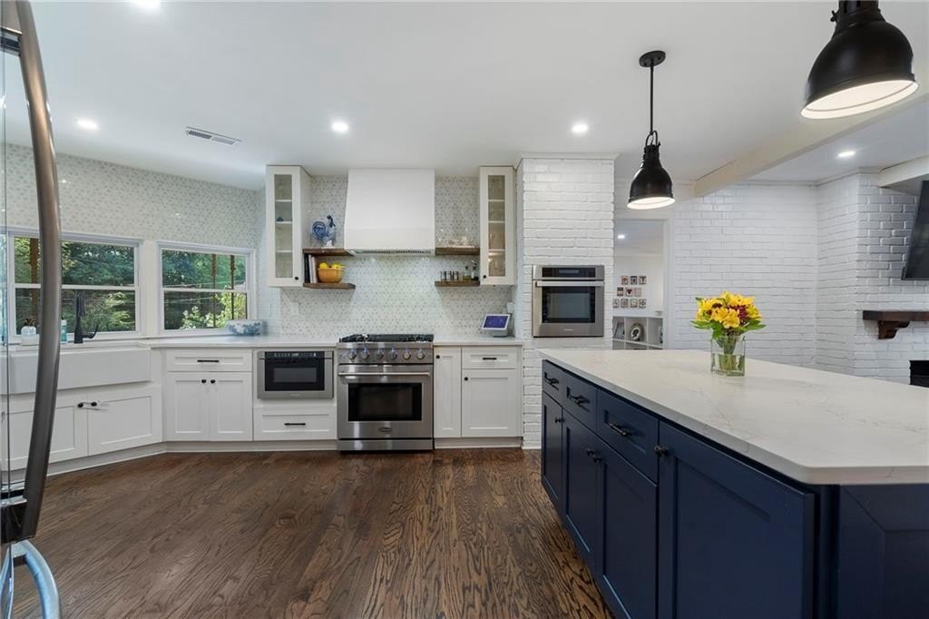 Just listed in Kingsley neighborhood in Dunwoody! This charming, completely renovated ranch is the one you've been waiting on! Walk into a dedicated foyer space and you'll immediately notice the thoughtful updates that the current owners have made during their ownership - hardwood floors throughout, recessed lighting, new interior doors and hardware. The open concept kitchen with living room makes this such a special home - the kitchen was updated with love in 2022 with gas range, custom vent hood, all new stainless steel appliances, white cabinetry, farm house sink, updated backsplash, and quartz countertops. There are 2 secondary bedrooms that share a renovated hall bathroom. The oversized primary bedroom features an en-suite bathroom (newly renovated in 2024) with Carrera marble tile, frameless shower, double sink vanity, and walk-in closet. Two generous secondary bedrooms share an updated hall bathroom. There's tons of extra storage throughout, including a dedicated laundry room/ mud room. The roof was just replaced 4 years ago. Enjoy year-round outdoor entertaining on the front porch or four season sunroom and a private, fully fenced-in backyard is perfect for your pets!
