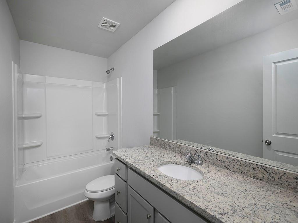 NEW CONSTRUCTION home on BASEMENT in the beautiful Timberlands Subdivision under 400K and in a cul-de-sac. This Adam floor plan features 4 bedrooms, 2.5 bathrooms, and a 2-car garage. The home boasts an open concept design, making it perfect for family gatherings, with plenty of natural sunlight illuminating the space. Among the included features are a spacious open kitchen, which offers open views to the separate dining room and family room. Additional highlights include soft-close cabinets, granite countertops in the kitchen and bathrooms, and stainless steel appliances, including a microwave, dishwasher, and electric free-standing range. The main level has LVP flooring throughout, while the bedrooms are carpeted. The primary bathroom features granite countertops, dual vanity, tile shower, separate soaking tub and seating area. You will also find two additional nicely sized bedrooms and another full bathroom on the second level. The full size unfinished basement is ready for your customization. Amazing builder incentives available. Current pictures of the home are STOCK PHOTOs