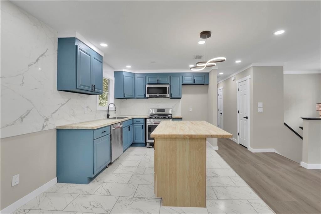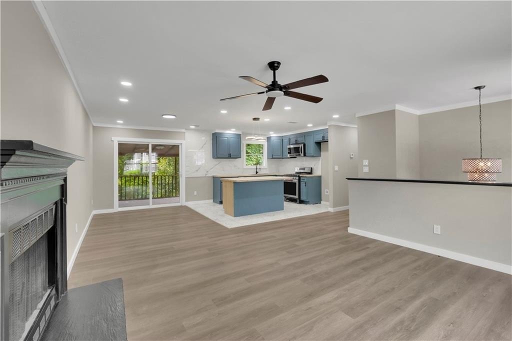 At the heart of the home is a stunning kitchen, featuring elegant stone countertops that pair perfectly with brand-new cabinetry—truly a chef’s dream.