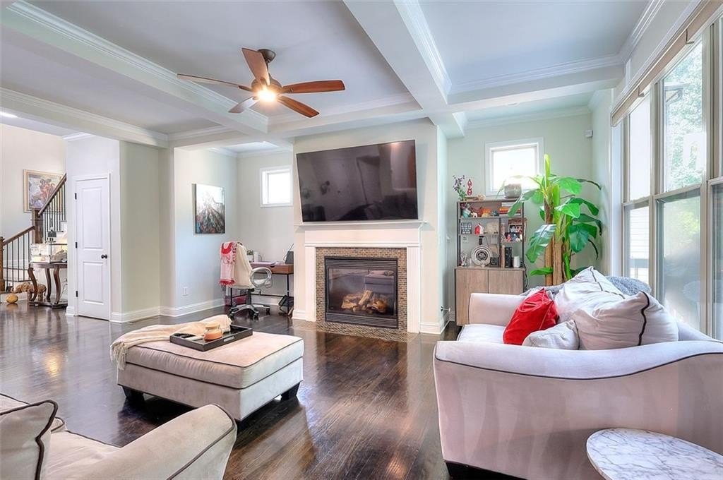 Welcome to your dream home, a stunning Craftsman-style residence in the highly sought-after Eastside Walk community. This luxurious 4-bedroom, 4.5-bathroom home, built in 2007, spans an impressive 3,988 square feet and is designed for both elegant living and seamless entertaining. The heart of the home is a spacious, open-concept kitchen featuring a large island, stainless steel appliances, and a walk-in pantry, all flowing effortlessly into the family room. Retreat to the owner's suite, a true sanctuary with an oversized master bedroom, a custom walk-in closet, and a master bath complete with a dual vanity and a separate tub and private shower. The luxury continues in the finished basement, which offers a world of entertainment possibilities, including a media room, a custom bar perfect for gatherings, a dedicated workout studio/area, and a private home office space. Thoughtful details like coffered ceilings, crown molding, and high ceilings on the main and upper floors add to the home's sophisticated charm. Outdoors, you'll find a secluded, landscaped, and level lot with a front porch and a deck for enjoying the serene surroundings. While offering a prime intown location, this home also provides community amenities like a playground and pool, a true rare combination. With its blend of modern amenities and classic architectural style, this residence serves as an opportunity you don't want to miss.