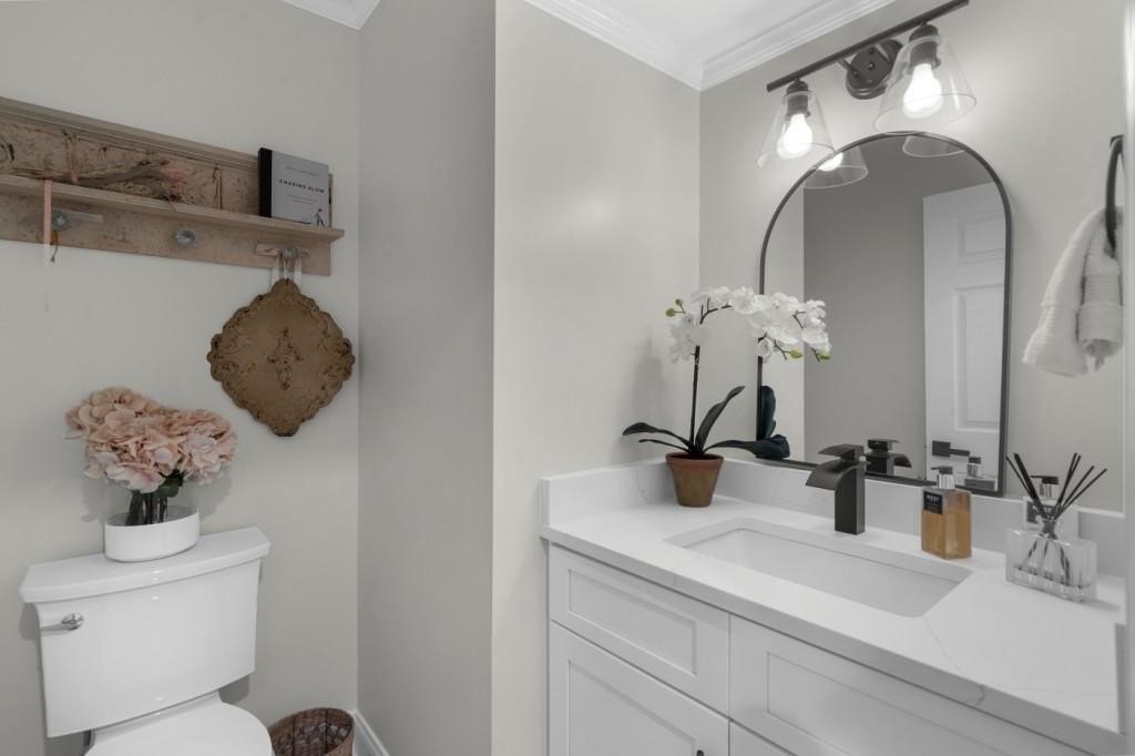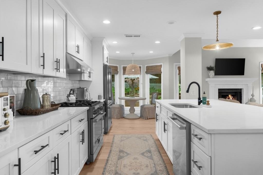 Welcome to your completely renovated haven in the heart of downtown Alpharetta, where charm meets modern sophistication on a sprawling .69-acre lot! This delightful 3br 2.5ba home offers the perfect blend of comfort and style. Step inside to discover stunning white oak wide plank hardwood floors that flow throughout the home, creating warmth and elegance in every room. The primary suite is conveniently located on the main level, spa like bathroom with floating vanities, frameless glass shower and designer lighting. The living room captivates with a vaulted ceiling and cozy wood-burning fireplace complete with gas starter. The open kitchen serves as the heart of the home, featuring stainless steel appliances, oversized island, designer tile, quartz countertops and a charming breakfast nook with bay windows that frame views of the beautifully landscaped outdoor entertaining area. A spacious dining area on the opposite side of the kitchen provides ample space for hosting family gatherings. Secondary level offers two bedrooms and a full bathroom, with ample storage and closet space. Completely redesigned landscape featuring boulder walls, pea gravel entertaining areas, complete irrigation system, lush Zoysia sod, mature trees, and plantings all enclosed within a quintessential white picket fence. Thoughtfully designed low-voltage lighting illuminates the home and yard, with enchanting firefly lights dancing among the trees from dusk to dawn. Enjoy a short stroll to your favorite restaurants and shops, welcome home!