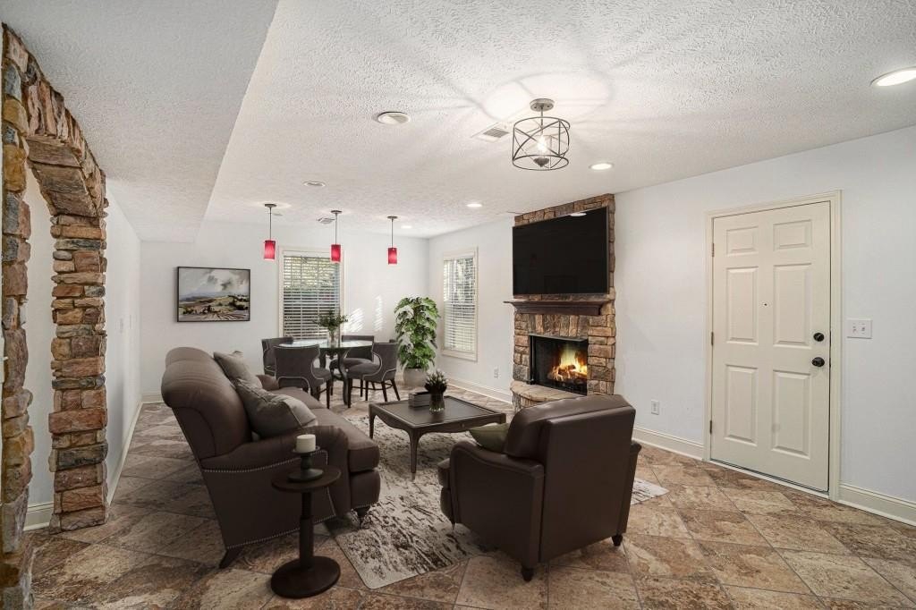 Gorgeous Brick Traditional in Prestigious Crown Chase! Tucked away on a Quiet Cul-de-Sac in Stockbridge, this home boasts a Private Pool and Incredible Curb Appeal. Enjoy the convenience of nearby Dining, Shopping, and Entertainment with Easy Access to I-75, plus Outdoor Amenities like Swan Lake, Golf Courses, and Parks just minutes away. From the street, you're welcomed by a Large Flat Front Yard, Expansive Driveway, Mature Trees, and Manicured Landscaping. Step inside to a Soaring Two-Story Foyer flanked by a versatile Living Room or Home Office to the left and a Formal Dining Room with Tray Ceiling, Wainscoting, and Abundant Natural Light to the right. The heart of the home is the Fireside Family Room with Tall Ceilings, Crown Molding, Hardwood Floors, and Custom Built-Ins surrounding the Fireplace. The Gourmet Kitchen features Granite Countertops, White Cabinets, a Walk-In Pantry, and a Breakfast Bar. An Extended Deck with Pergola off the Kitchen overlooks the Large Backyard perfect for Morning Coffee and Entertaining. A Light-Filled Breakfast Nook with a Wall of Windows is an ideal spot for casual meals. A convenient Powder Room completes the Main Level. Upstairs, the Oversized Primary Retreat impresses with a Tray Ceiling, Shiplap Accent Wall, and a Private Sunroom Sitting Area with Balcony Access. The Spa-Like Ensuite showcases a Vaulted Ceiling, Soaking Tub, Oversized Glass Shower with Dual Shower Heads, Double Vanity, and a Custom Walk-In Closet. Two Secondary Bedrooms share a Jack-and-Jill Bath, while a Fourth Bedroom enjoys a Private Ensuite. The Upstairs Laundry Room adds everyday convenience. The Fully Finished Daylight Terrace Level is an Entertainer's Dream with a Stone Fireplace, Open Living and Dining Area, Full Bath, and Two Bonus Rooms ideal for a Media Room, Playroom, or Guest Suite. Stone Archways add distinctive charm. Step outside to your Backyard Oasis featuring a Sparkling In-Ground Pool, Stone Fireplace, Built-In Grill, and Spacious Patio, all surrounded by Mature Trees for Privacy. A Storage Shed provides space for pool and yard equipment. A notable Upgrade includes Double Water Heaters for added efficiency and comfort This home perfectly combines Style, Comfort, and Location ready to welcome you Home!