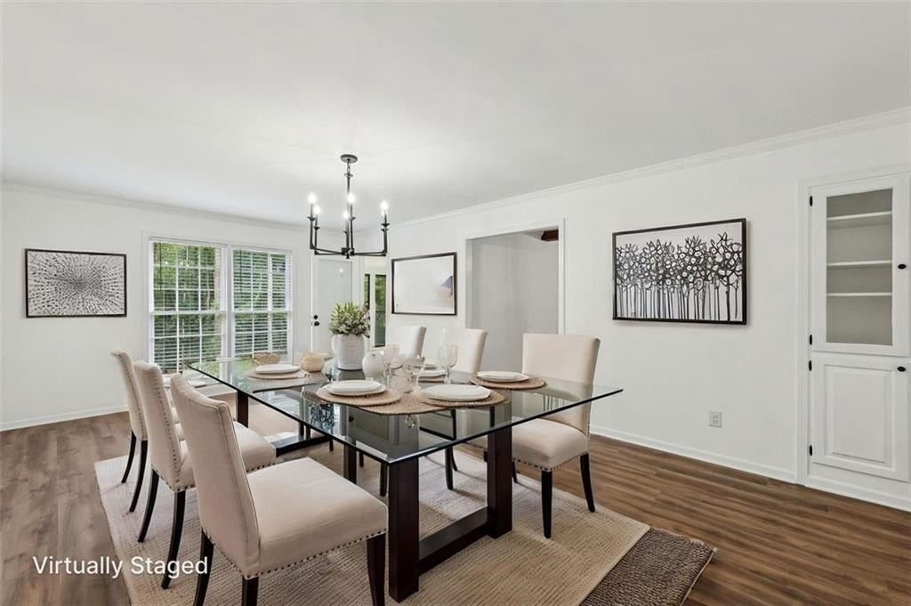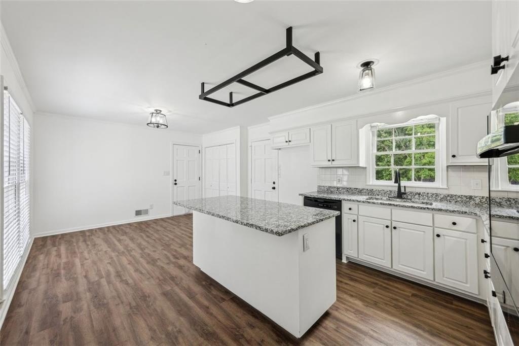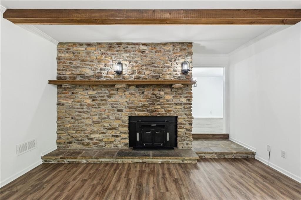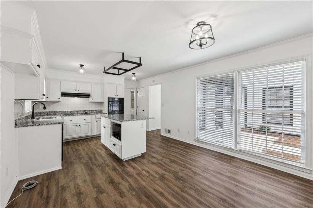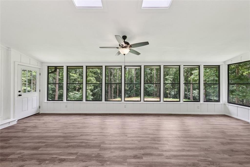 Step inside to discover a spacious open concept floor plan with vaulted beam ceilings, new finishes, and designer details throughout. The highlight of the home is the expansive sunroom, now fully integrated into the living space, featuring a wall of windows and skylights that flood the room with natural light while providing serene views of the picturesque backyard.