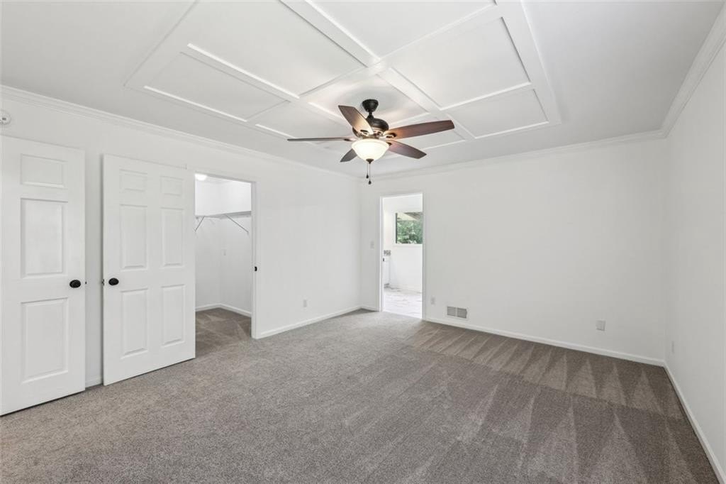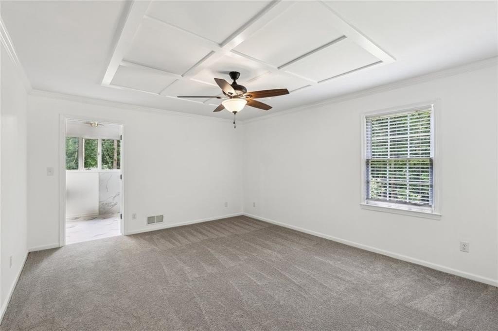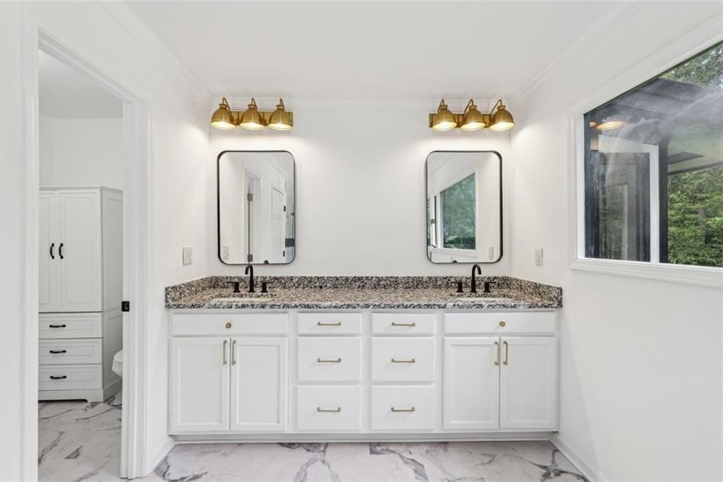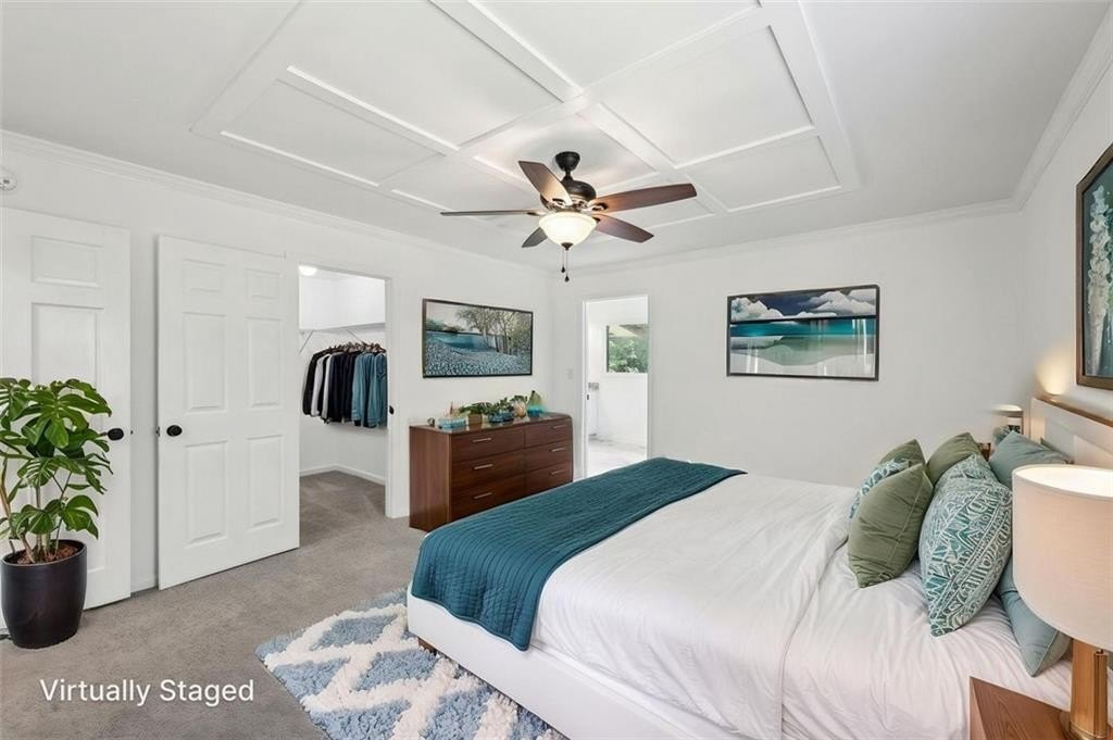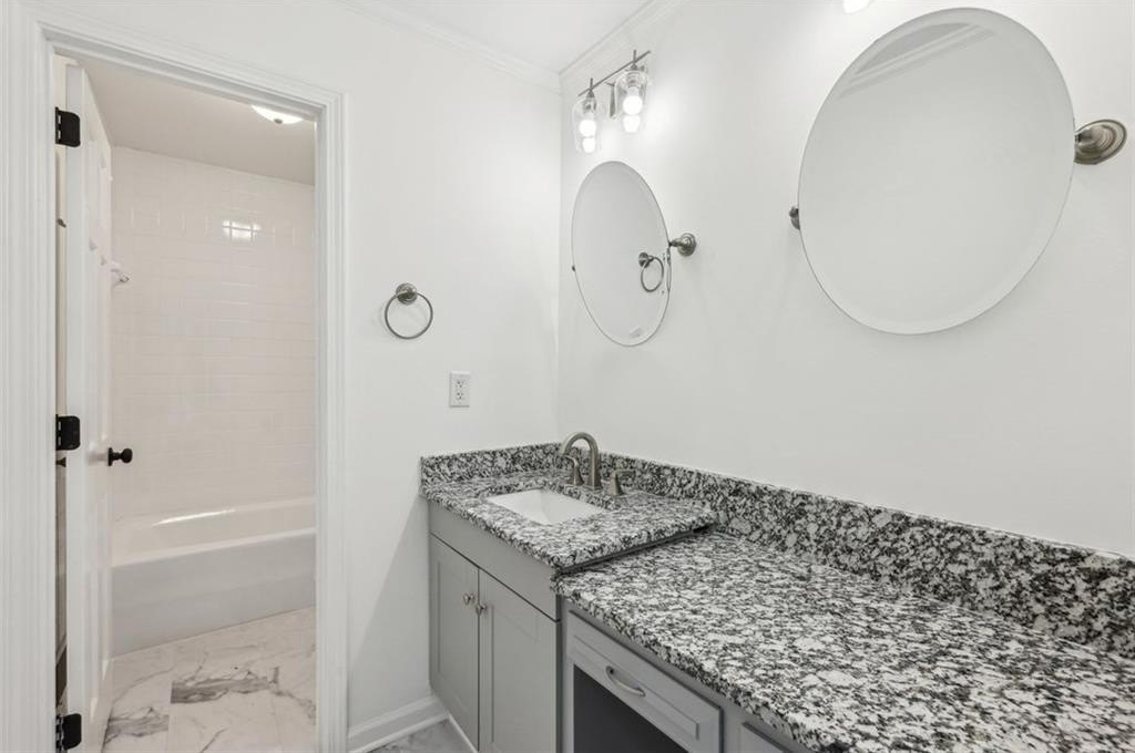 The primary suite feels like a private getaway with its spa-style bath, including a freestanding soaking tub, oversized custom-tiled shower, dual vanities, and private water closet. Additional bedrooms are generously sized with thoughtfully updated baths.