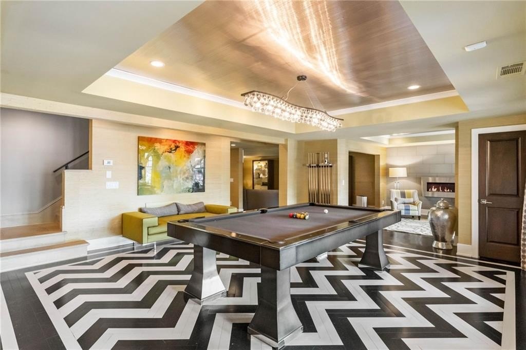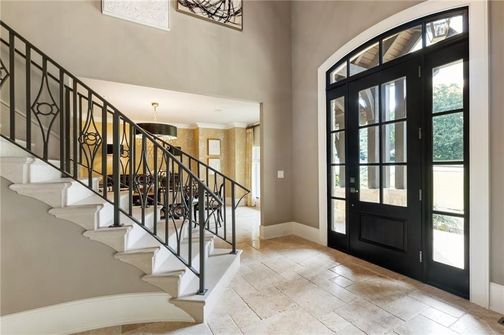 Step inside through custom oak front doors into a grand two-story foyer, where a curved limestone stairway, designer chandelier, and wide-plank walnut flooring set the tone for the rest of the home. Every inch of this property has been thoughtfully curated—from the five Francois & Co. designer fireplaces to the rich limestone and Carrara marble tile, custom lighting, and home-wide audio systems.
