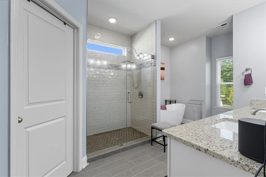 Upstairs, the grand owner’s suite offers a private sitting area and a beautifully remodeled bathroom featuring a high end double vanity, freestanding tub, newly tiled floor and stand-up shower, and a spacious walk-in closet. Two additional bedrooms, a full bath, and a convenient laundry room complete the upper level.