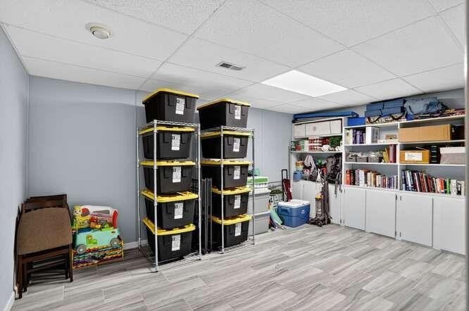 The partially finished basement provides flexibility for a home office, playroom, or theater, while the workshop space is perfect for DIY projects. There's a storage room, workshop, and a newly-finished room with LVP and new paint.
