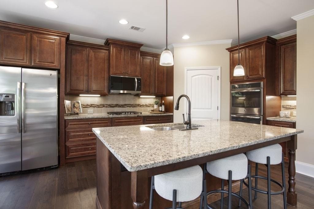 Congratulations, you've finally found THE HOUSE where every detail is designed for comfort, connection, and convenience. This beautifully updated 6-bedroom, 5-bath retreat overlooks a serene forest, offering a rare blend of privacy and community living. The full daylight basement features durable wood tile and multiple flex spaces. The main level boasts a guest bedroom, perfect for grandparents or out-of-town guests. This home offers the space and versatility every lifestyle needs. Plus, it may just be the GREATEST INVESTMENT you ever make with Medley, the exciting mixed-use development, scheduled for completion in late 2026, less than 5 minutes from your front door. Let's talk more about why this house is so special... Step inside and you're greeted by a flood of natural light and open spaces that immediately put you at ease. The backdrop of lush trees through the two-story living room windows creates a calming retreat you'll look forward to coming home to every day. Morning coffee on the deck feels like a getaway, yet the energy of city life is just minutes away. The spacious kitchen, with its brand-new solid wood cabinets, new appliances, and generous storage, flows seamlessly into the vast living area, perfect for hosting holiday parties, lively game nights, or quiet evenings. Upstairs, you'll find 3 additional bedrooms plus the expansive master bedroom suite with a spa-like bathroom, complete with soaking tub, double vanities, granite countertops and an oversized walk-in closet. The fully finished basement extends your living space with yet another bedroom and updated bathroom, plus room for movie nights, game-day entertaining, or a teen hangout, while the tiled flooring ensures both style and durability. The flex spaces in this home offer endless options for a home office, playroom, or gym. Community amenities add to the lifestyle: enjoy the pool and playground just down the street, perfect for summer afternoons and connecting with neighbors. And don't forget Medley, the exciting mixed-use development opening in late 2026! You'll soon have even more shopping, dining, and entertainment less than 5 minutes from your doorstep. Recent upgrades include: new engineered hardwood flooring with sound-absorbing underlayment, new lighting, full replacement of original hot-water PEX piping, fresh interior and exterior paint, and a Moen Flo Smart Water Monitoring System. This home truly is move-in ready.
