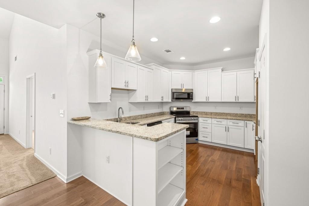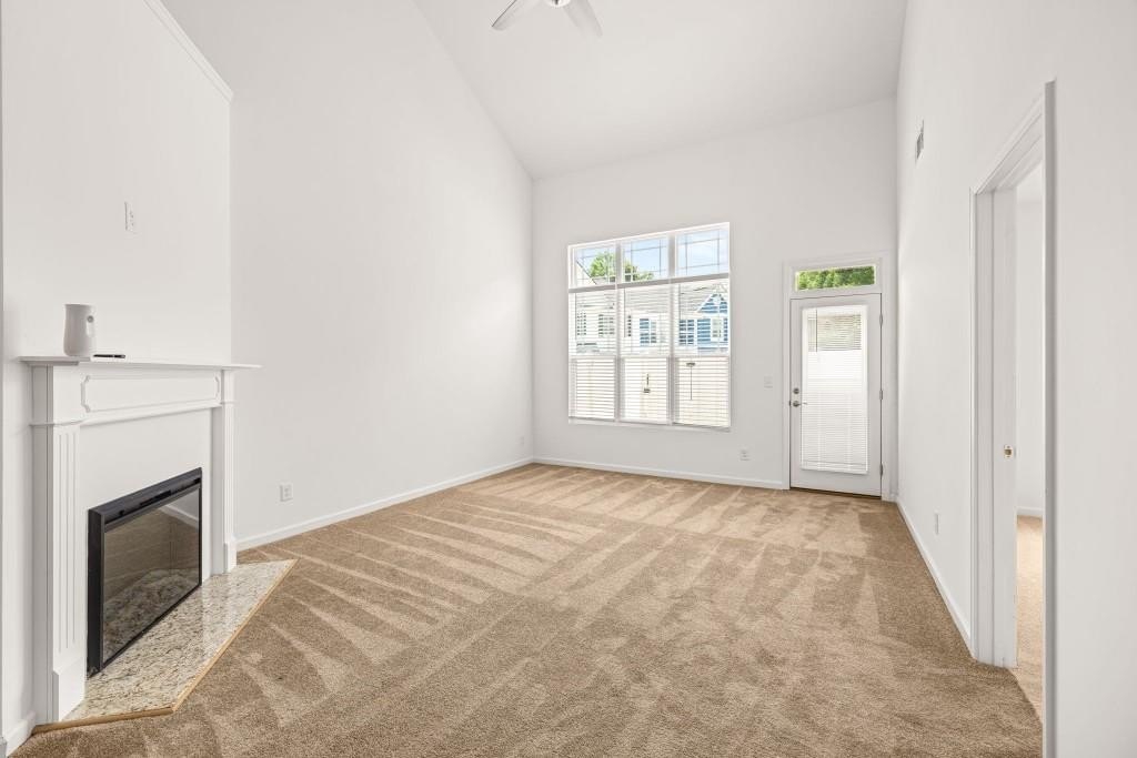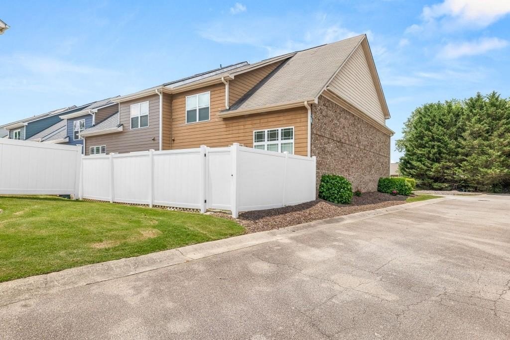 Here's a wonderful opportunity to own your beautifully renovated home in the established, quiet community of Sandridge Commons at Lake Lanier! This large, end unit, townhome with high ceilings and lots of storage, includes a welcoming entry with wood floors, a half bath, and convenient laundry room. The kitchen features all new: wood floors, cabinets and granite countertops, along with a farmhouse sink, and appliances with views to the family room and separate dining room. The spacious family room includes a soaring, vaulted ceiling, new carpet, and an electric fireplace where you'll enjoy cozy mornings and evenings. Located just off the family room, your primary bedroom with new carpet, a walk-in closet, and ensuite with granite countertops is a welcome retreat. Outside, and just off the family room, you'll enjoy an intimate patio with a privacy fence, perfect for entertaining. Upstairs, you'll find 2 spacious loft areas perfect for an office, study, or warm, library area. A second large bedroom has 3 closets, with one being a walk-in. This bedroom, and a third bedroom with a large walk-in closet, will share a large bath with an additional clothes closet and a linen closet. You'll enjoy being close to Lake Lanier, easily accessed by nearby Thompson Bridge Park, shopping, dining, and the downtown square with all combining for an active and enjoyable lifestyle. Call today for your private tour!