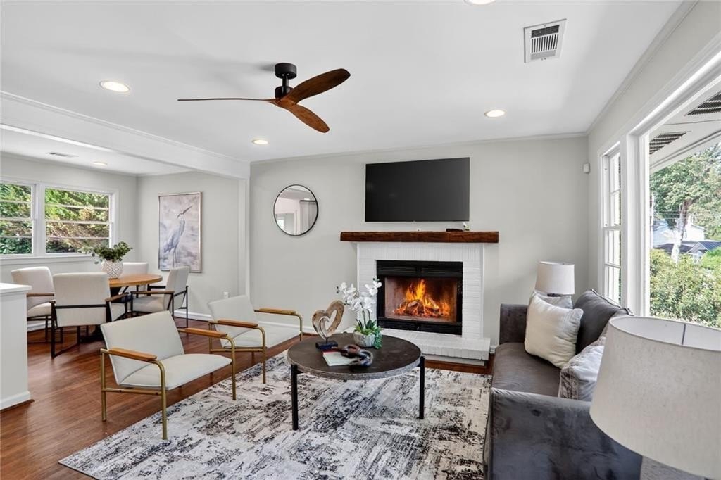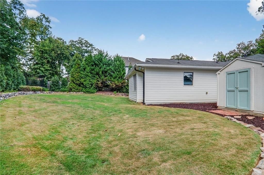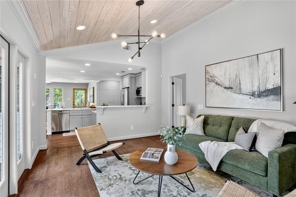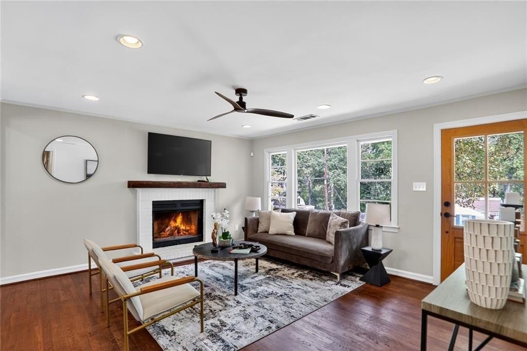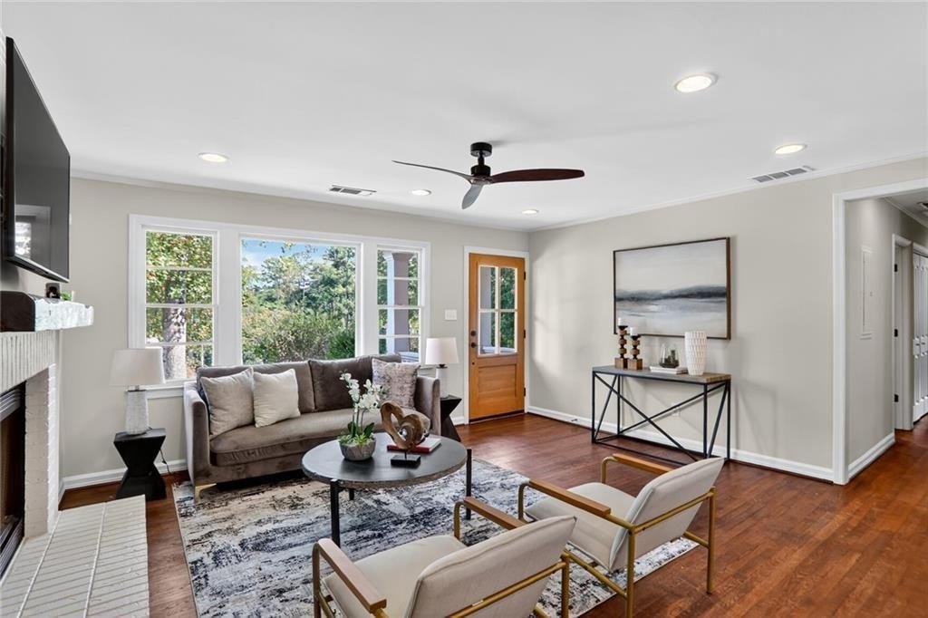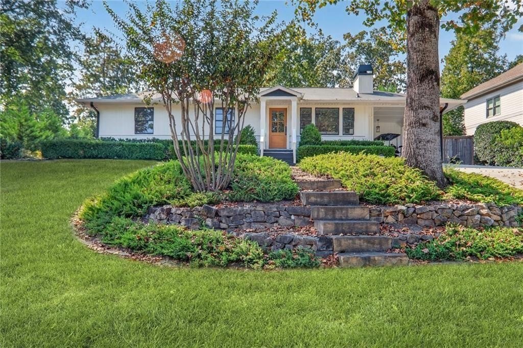 Renovated and expanded ranch home in the center of Ashford Park! Walk into an open and sunny layout with large windows showcasing both front yard views and landscaped, walk-out backyard views. The living room offers recessed lighting and a fireplace with brick hearth and surround that opens to the renovated kitchen with both prep island and bar seating and full stainless steel appliance package with gas range. 2nd living area added with vaulted tongue and groove ceilings and french door access to the backyard, patio and firepit. New owner's suite easily accommodates a king size bed and also features stained tongue and groove vault ceiling and a spacious, private bath with freestanding tub, walk-in shower with marble tile, separate vanities, large closet and private toilet room. 2 full, additional bathrooms have been renovated and are shared by 3 more bedrooms. Separate laundry room plus covered storage in the carport and additional park pad. Custom landscaping and sodded backyard set up great for endless entertainment.