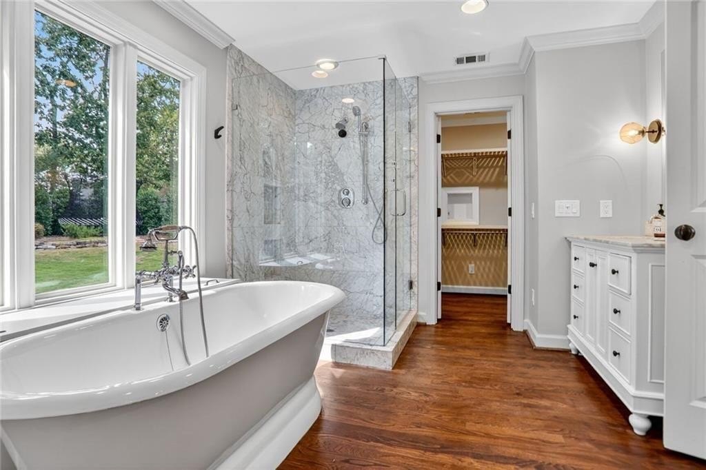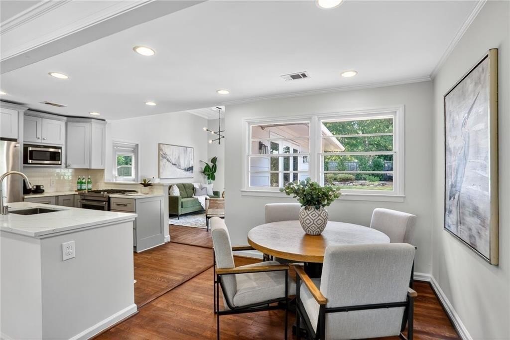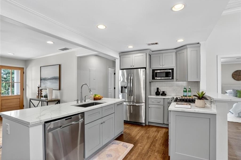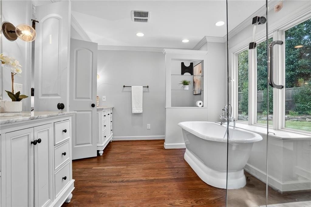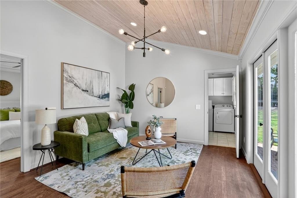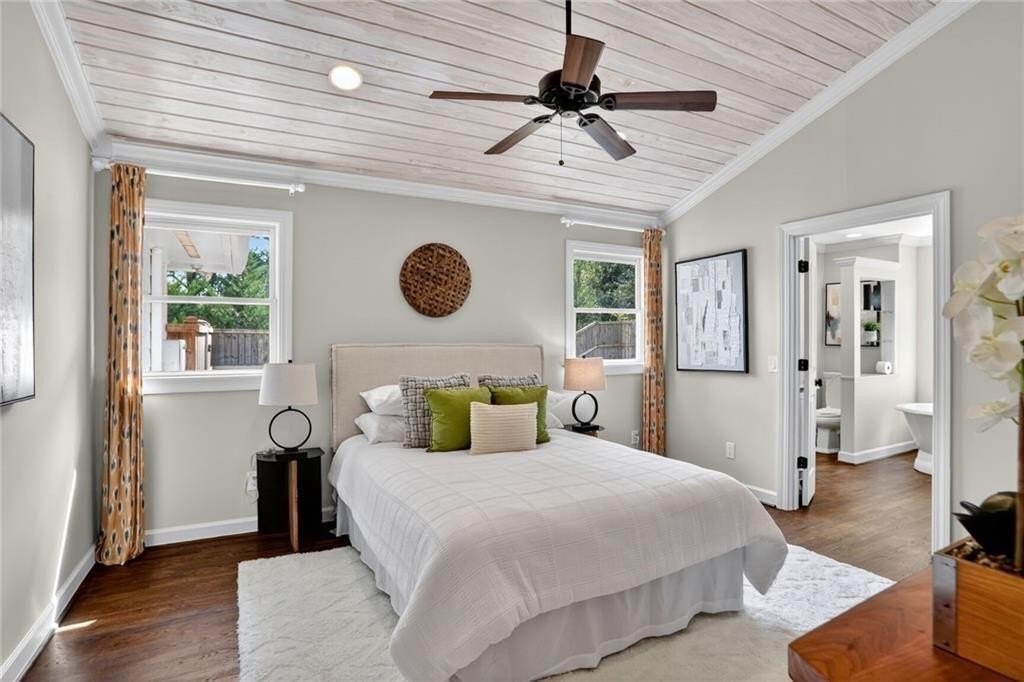 Renovated and expanded ranch home in the center of Ashford Park! Walk into an open and sunny layout with large windows showcasing both front yard views and landscaped, walk-out backyard views. The living room offers recessed lighting and a fireplace with brick hearth and surround that opens to the renovated kitchen with both prep island and bar seating and full stainless steel appliance package with gas range. 2nd living area added with vaulted tongue and groove ceilings and french door access to the backyard, patio and firepit. New owner's suite easily accommodates a king size bed and also features stained tongue and groove vault ceiling and a spacious, private bath with freestanding tub, walk-in shower with marble tile, separate vanities, large closet and private toilet room. 2 full, additional bathrooms have been renovated and are shared by 3 more bedrooms. Separate laundry room plus covered storage in the carport and additional park pad. Custom landscaping and sodded backyard set up great for endless entertainment.