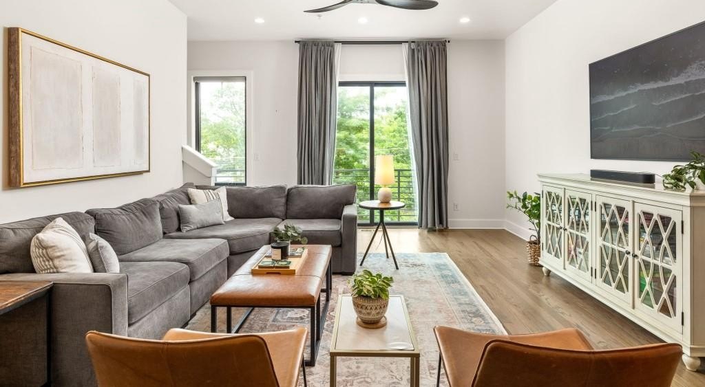 Welcome to the heart of Poncey-Highland, where this Monte Hewett townhome blends modern comfort with an unbeatable location. Behind the gated entry, a charming courtyard leads you inside to discover thoughtful details at every turn. The entry level features hardwood floors, a guest suite with its own courtyard access, and a mudroom that connects to the two-car garage. Upstairs, the main level was designed for gathering with an open living and dining space anchored by a chef's kitchen, with Jenn-Air appliances, a walk-in pantry, soaring 10-foot ceilings, and a Juliette balcony overlooking North Highland Avenue. The third floor is home to the spacious primary suite with two walk-in closets and a spa-like bath, plus a secondary bedroom, full bath, and laundry. The top floor is all about entertaining with a wet bar, beverage fridge, and a rooftop terrace and a rooftop terrace, complete with city views and gas grill hookup! Don't miss all the storage closets! Steps from Manuel's Tavern and Java Vino, with easy access to the BeltLine, Freedom Parkway, all major highways, Inman Park, and Virginia-Highland - this one is unbeatable!