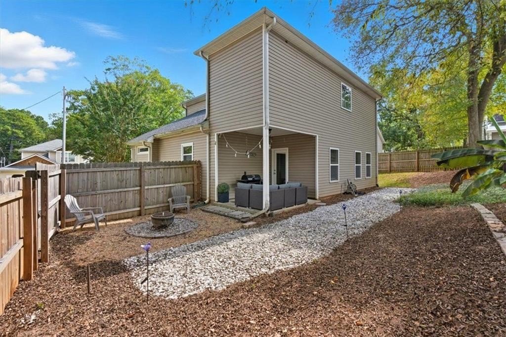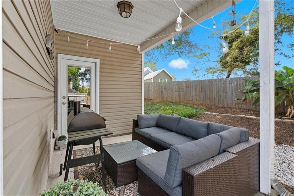 Outside, the private fenced backyard is a tranquil escape, thoughtfully landscaped with gravel and rock for low maintenance serenity. The back patio is an inviting spot to enjoy morning coffee, unwind with a book, or soak in the peaceful sounds of nature.