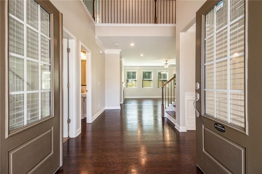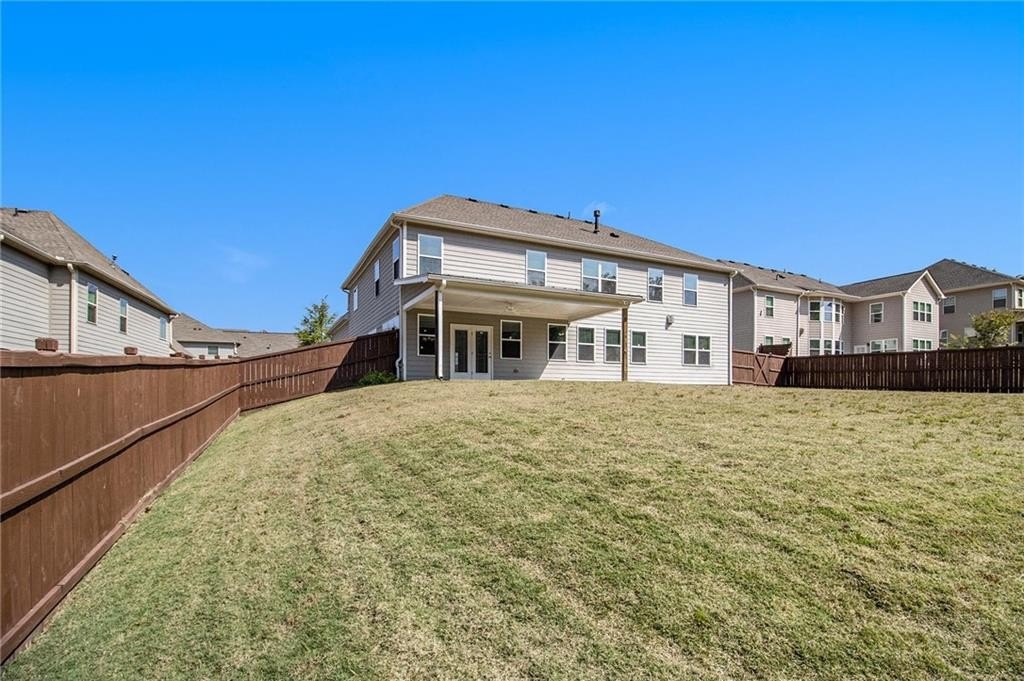 Welcome home to the highly sought-after Mountain Crest community! This stunning 5-bedroom, 4.5-bath residence offers an open floor plan with soaring 9-foot ceilings, elegant two-piece crown molding, and a dramatic two-story foyer. Hardwood floors flow throughout the main living areas, where you’ll find a spacious family room with a cozy fireplace overlooking a private fenced backyard and a bonus large covered porch. The main level also features a dedicated office, guest bedroom with full bath, and a chef’s kitchen complete with a large island, granite countertops, walk-in pantry, upgraded backsplash, cabinets, and lighting—all with easy access to the extended covered patio, perfect for entertaining.
