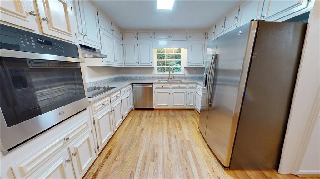 Charming Dunwoody Home in Excellent Move-In Condition Located on a Great Cul-de-Sac Street Perfect for Walking, Biking & Play! From here you can stroll to Dunwoody ES and High schools, the JCC, and nearby places of worship, with shopping, dining, and major employers only minutes away. Inside, everything feels fresh and cared for: hardwood floors up and down, crisp new paint, and sun-filled rooms. The main floor offers a fireside great room with front-to-back windows, a flexible living room, and a bedroom with full bath—perfect for guests or a home office. The updated kitchen has new granite counters, a brand-new oven and dishwasher, and freshly painted cabinets. Upstairs, you’ll find a spacious primary suite plus two more bedrooms and another full bath. From the great room, step out to the large, newly stained deck with views of the very private, level backyard great for cookouts, pets, or unwinding under the trees. The daylight basement is a true bonus with high ceilings and a Trotter waterproofing system that keeps it clean, dry, and ready to finish—or simply ideal for storage. Excellent condition - pre-inspected + freshly painted exterior, 2025 furnace & water heater! On public sewer and has a separate water line! Come see why this home is a great find and tremendous value!