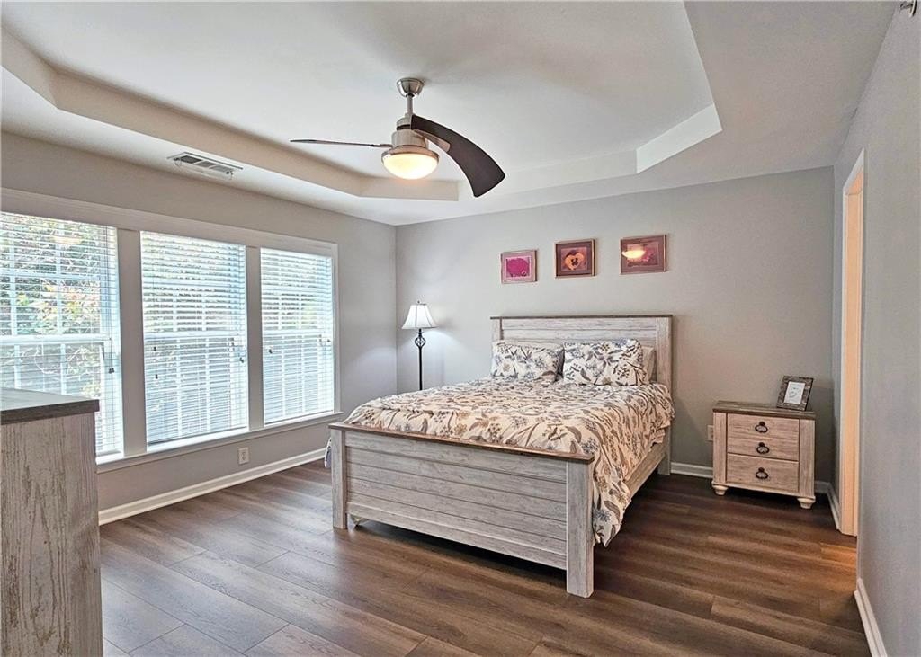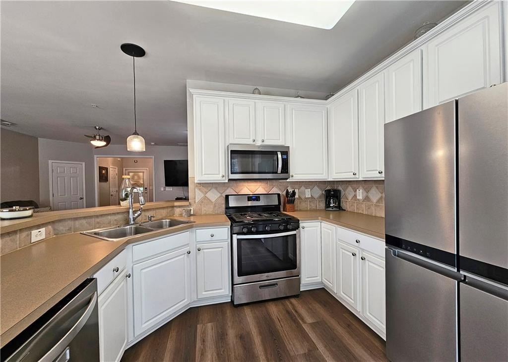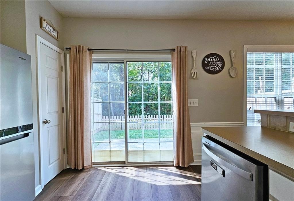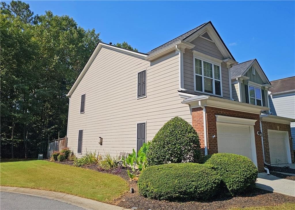 Charming End-Unit Townhome with Scenic Wooded Backdrop Discover this delightful townhome, boasting one of the larger floor plans available and nestled at the end of a private cul-de-sac. Surrounded by a tranquil wooded area where wildlife is often sighted, this home offers a perfect blend of privacy and natural beauty. New Roof, Fresh Paint, Updated lighting, Move right in and enjoy. Main level features hardwood floors throughout an open-concept layout, complete with a gas fireplace and a bright white kitchen, ideal for entertaining and everyday living. The secondary level is also complete with hardwood floors throughout . The primary suite is a true retreat, featuring a garden tub, dual vanities, and a spacious walk-in closet. Additionally, two other well-lit and generously sized bedrooms provide ample space for relaxation and rest. Step outside to enjoy a fenced-in backyard private yard, perfect for outdoor activities and gatherings. Fantastic quiet location offering great guest parking near the home. Located in a quiet neighborhood known for its excellent schools, this community is not only dog-friendly but also boasts a stunning nature trail along a creek, enhancing the serene environment. With easy access to major highways, this townhome combines convenience with peaceful living.