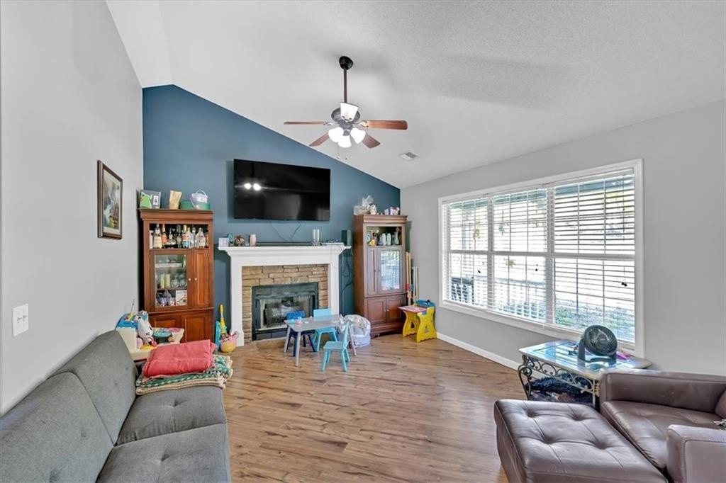 This inviting 3-bedroom, 2-bathroom traditional home sits on a desirable corner lot and features a functional split-bedroom floor plan. Step inside to find an open main living area with laminate flooring throughout, creating a warm and low-maintenance space. The spacious living room with fireplace is perfect for cozy evenings or entertaining guests.