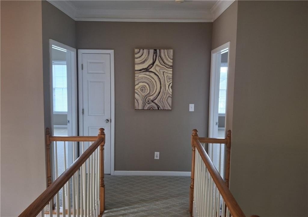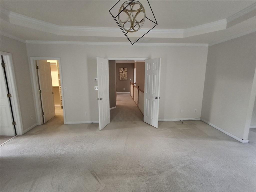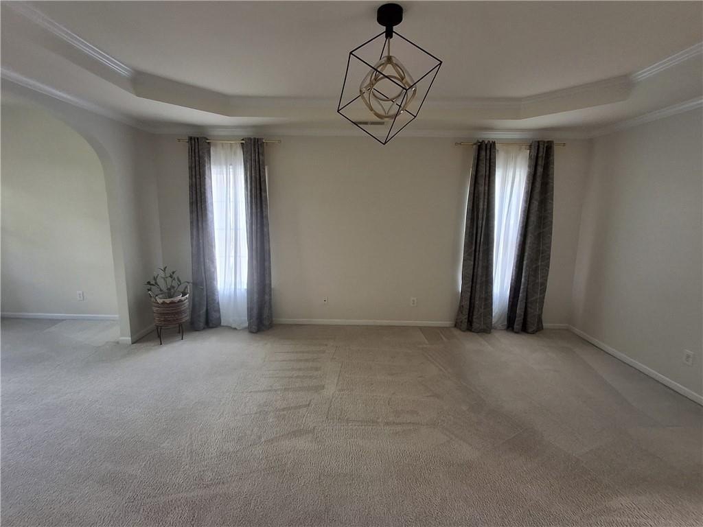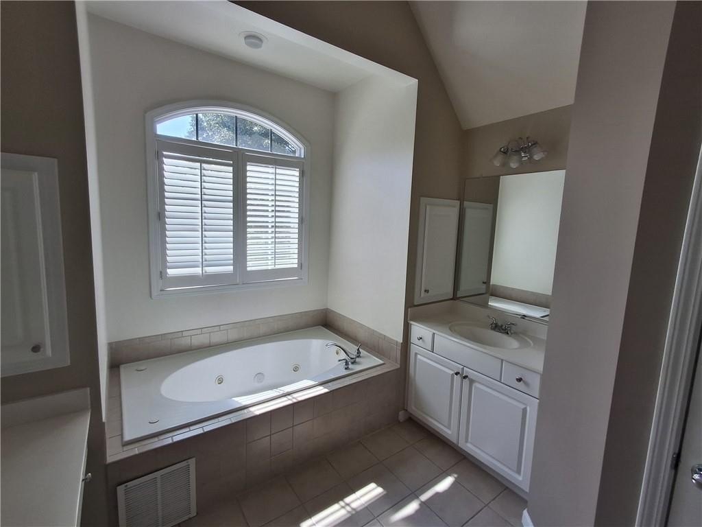Upstairs, the large master bedroom includes a private sitting area and a custom-designed closet system. The luxurious master bath boasts a jetted garden tub, oversized walk-in shower with bench, separate vanities, and a private water closet.