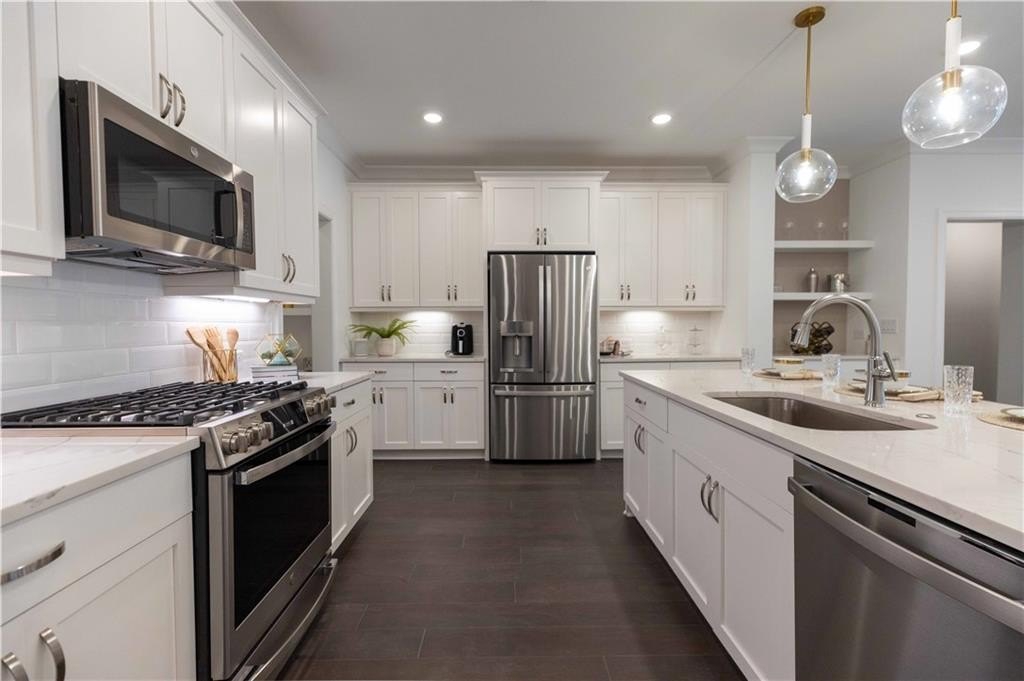 Fall into Saving with a unbelievable interest rate with 3-2-1 buydown! Ask agents for details! Move in Ready!! Spectacular home next to the Chattahoochee River! Step into effortless living with this beautifully appointed one-level condo, perfectly situated just moments from the scenic Chattahoochee River. Designed for comfort and style, this home boasts a bright and open floor plan that blends modern finishes with everyday functionality. The kitchen is a true centerpiece, featuring sleek Frost countertops, soft Alabaster cabinets, and a contrasting Driftwood-finished island that offers extra prep space and seating—perfect for casual dining or entertaining. GE stainless steel appliances complete this contemporary culinary space. Throughout the home, Pride Plus Ambassador flooring by Shaw adds a warm, elegant touch, offering durability and beauty in every room. Retreat to a roomy Owner’s bedroom designed with comfort and tranquility in mind. Large windows fills the space with natural light, creating a warm and inviting atmosphere throughout the day. Step into the spa-inspired en-suite bathroom, where style meets functionality. Dual quartz-topped double vanities offer ample space for morning routines, while sleek fixtures add a touch of modern elegance. The highlight of the space is the oversized, glass-enclosed shower, perfect for a relaxing escape at the end of the day. Conveniently connected is a generous walk-in closet, providing both storage and organization. Enjoy outdoor living year-round on the covered porch, ideal for morning coffee or evening relaxation. The gated yard offers added privacy and a safe space for pets or gardening. With its unbeatable location close to the Chattahoochee River, you'll enjoy easy access to walking trails, nature, and a lifestyle that combines serenity with convenience. Our resort like amenities include an elegant clubhouse with a fitness center, 4 pickleball courts, firepit overlooking the river, a sensational pool also overlooks the serene Chattahoochee river. We also have lush green lawn spaces, HOA-maintained lawns! This sensational community is in the heart of Peachtree Corners one mile from the Forum. Don't miss this unique opportunity! Some Photos do not represent the actual home. For driving directions, you can use 4411 E. Jones Bridge Road, Peachtree Corners, GA 30092. [The Adams]