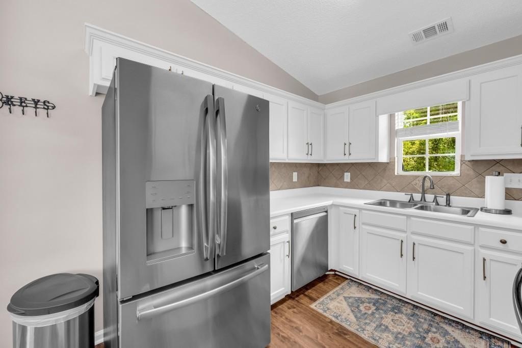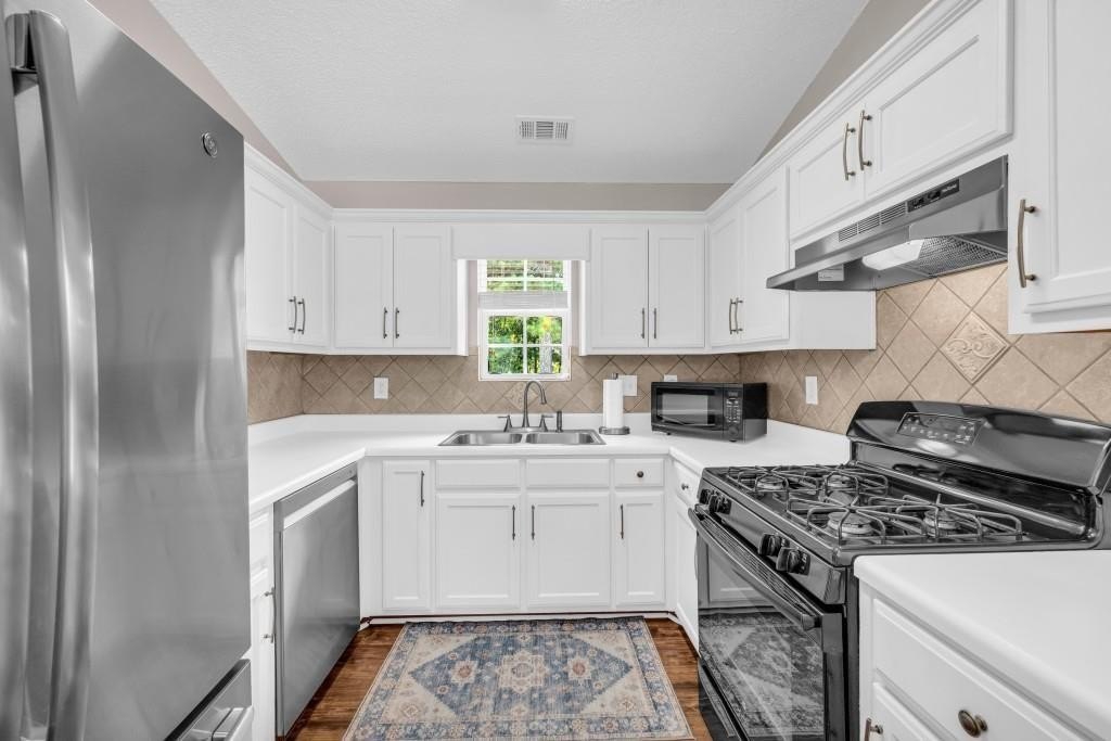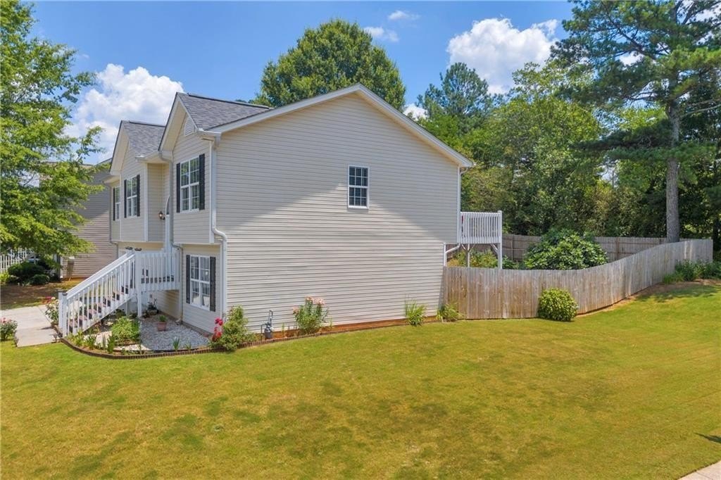 ** Seller Financing Available ** This spacious 4 bedroom, 3 full bath split-foyer home with a fully finished basement blends comfort, style, and versatility in a prime Lawrenceville location. Inside, you will love the AquaGuard laminate floors, abundant natural light, and a cozy family room with a fireplace and vaulted ceiling. The kitchen features bright white cabinets and well-organized counter space, complemented by a separate formal dining room that is perfect for entertaining. The primary suite offers a vaulted ceiling, a relaxing soaking tub, and a separate shower. Two additional bedrooms are located on the main level. The finished lower level is a highlight with another bedroom, a full bathroom, and a spacious great room with kitchenette. This setup is ideal for guests, extended family, or a private retreat. The oversized garage with attached storage room provides plenty of space for cars, tools, and hobbies. Step outside to a large deck overlooking a private fenced backyard with a garden area, perfect for outdoor gatherings or quiet evenings. The landscaped corner lot adds curb appeal with its lush greenery and inviting outdoor space. This home is minutes from Rhodes Jordan Park, Downtown Lawrenceville, the Mall of Georgia, and the Exchange at Gwinnett. Enjoy easy access to schools, shopping, trails, greenways, and community pickleball.