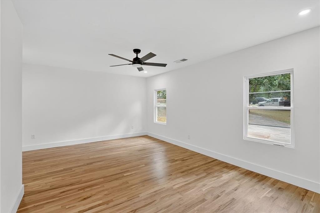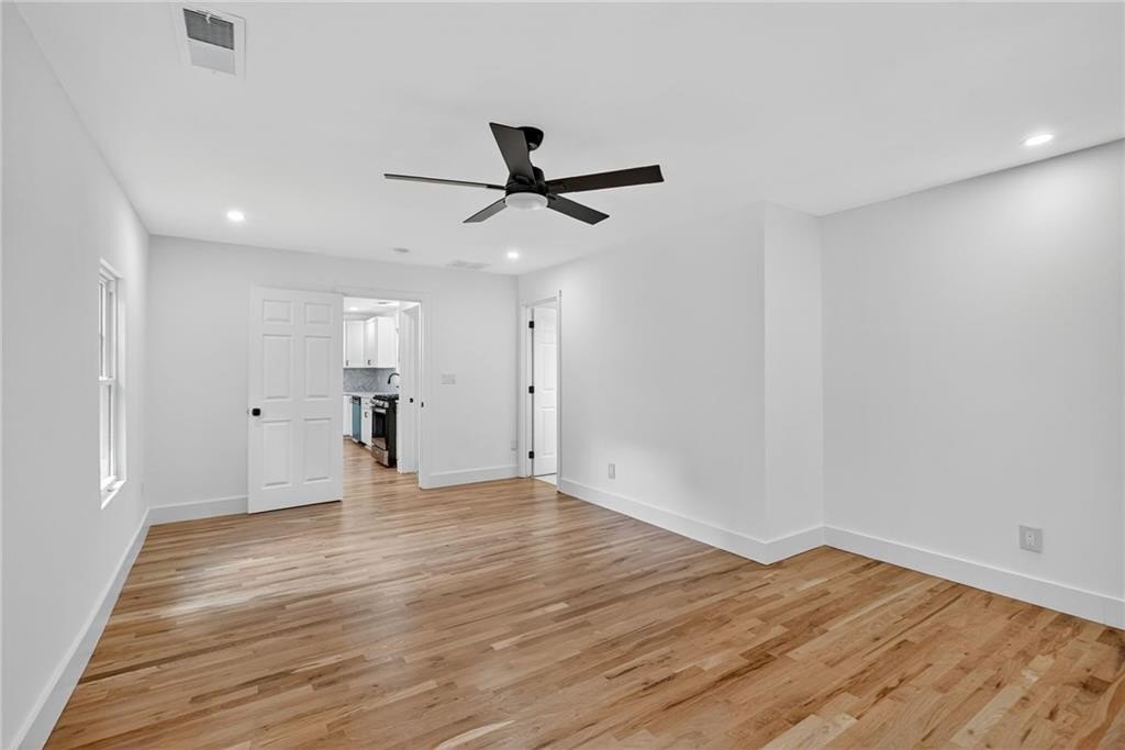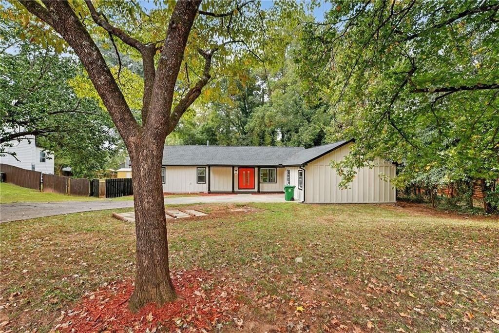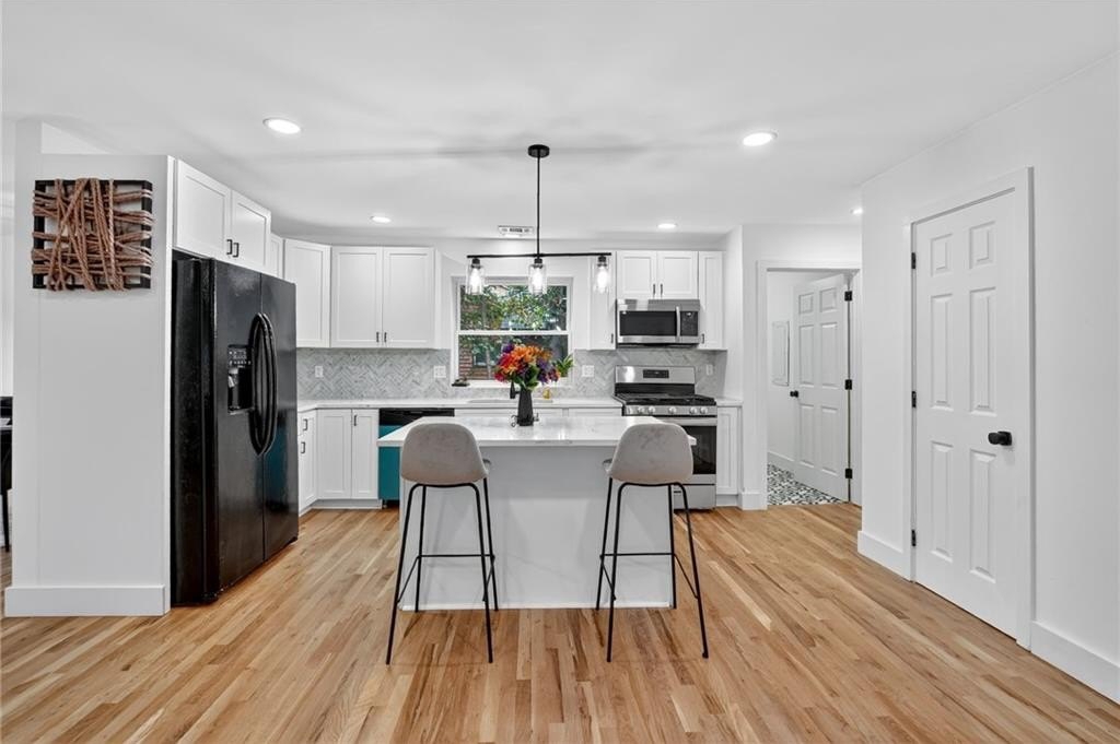 Welcome home to this beautifully renovated 4-bedroom, 3-bath ranch in the heart of Lithonia. Step inside to an open-concept layout with all-new flooring, fresh paint, and designer lighting throughout. The stunning kitchen features quartz stone counters, white shaker cabinets, breakfast bar seating, and a spacious eat-in area that flows seamlessly into the family room — perfect for entertaining.