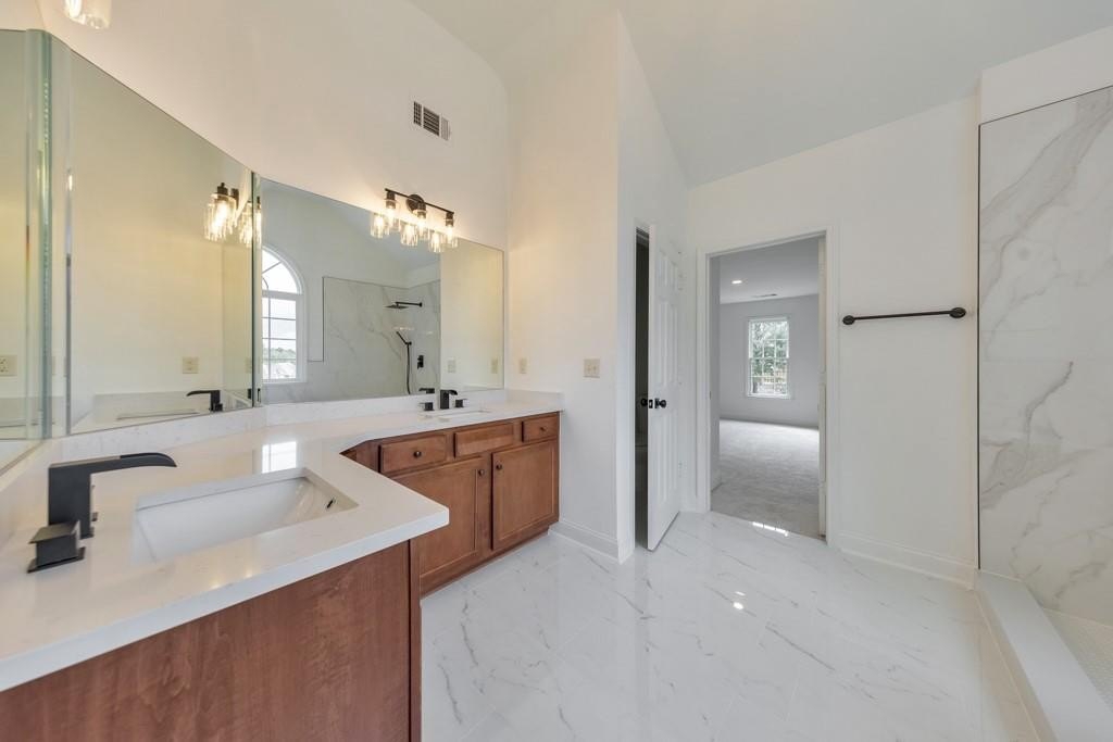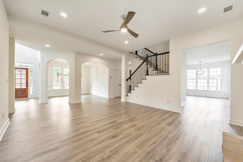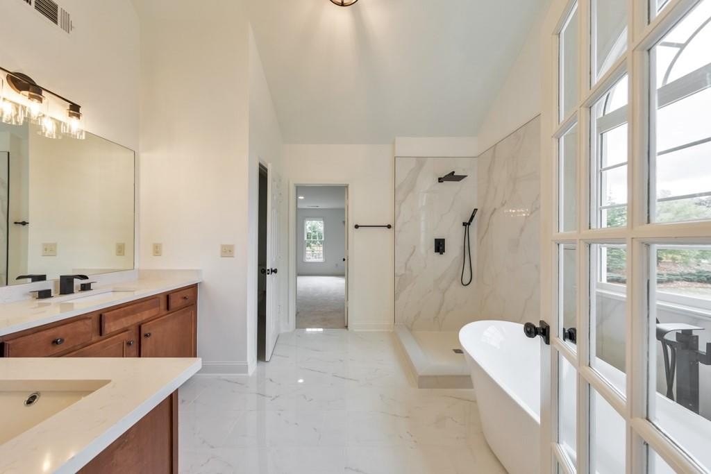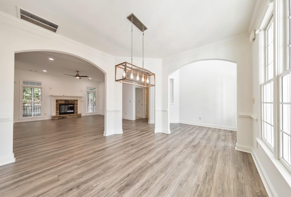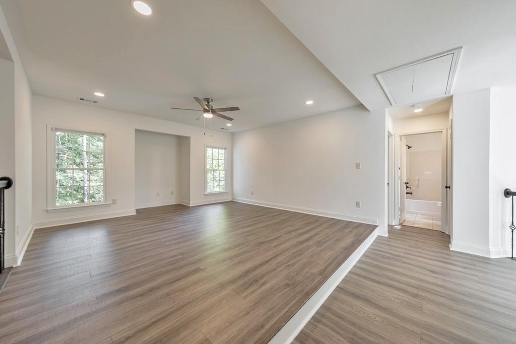 Welcome to this stunning 4 bedroom, 3 bathroom fully renovated home in sought-after Chestnut Hills, showcasing luxurious details throughout—from elegant crown molding to modern recessed lighting. The oversized covered front porch leads into a grand 2-story foyer, where a separate dining room flows effortlessly to the fireside family room. The updated kitchen features stone counters, a center island, pantry, and sunny breakfast room. A bedroom and full bath on the main level provide ideal guest or office space. Upstairs, a massive loft offers endless possibilities for a playroom, den, or home office. The expansive primary suite boasts tray ceilings, a sitting room overlooking the backyard, a spa-like ensuite with double vanities, a modern soaking tub, a sleek separate shower, and a huge walk-in closet. Two additional bedrooms share a full bath, and the laundry room is conveniently located on the upper level. Relax or entertain on the screened-in patio overlooking the fenced backyard, ready for your personal landscaping touches. Additional highlights include an attached 2-car garage and an unbeatable location across from the community pool, playground, and clubhouse. Situated in the East Paulding High School district with easy access to shopping, dining, and major roadways, this home perfectly blends style, space, and convenience.