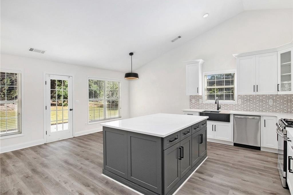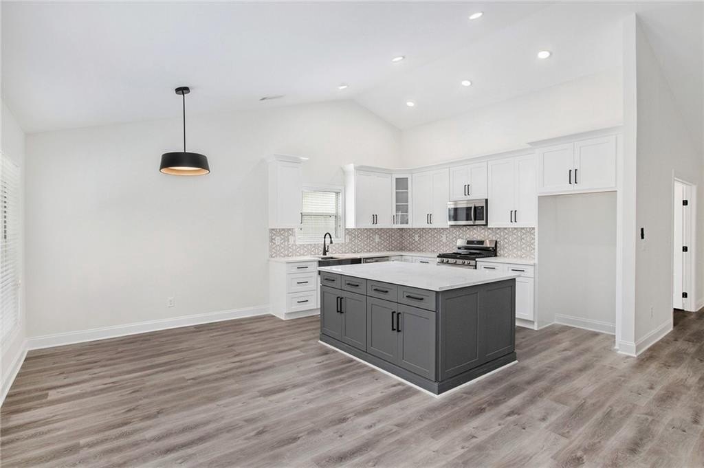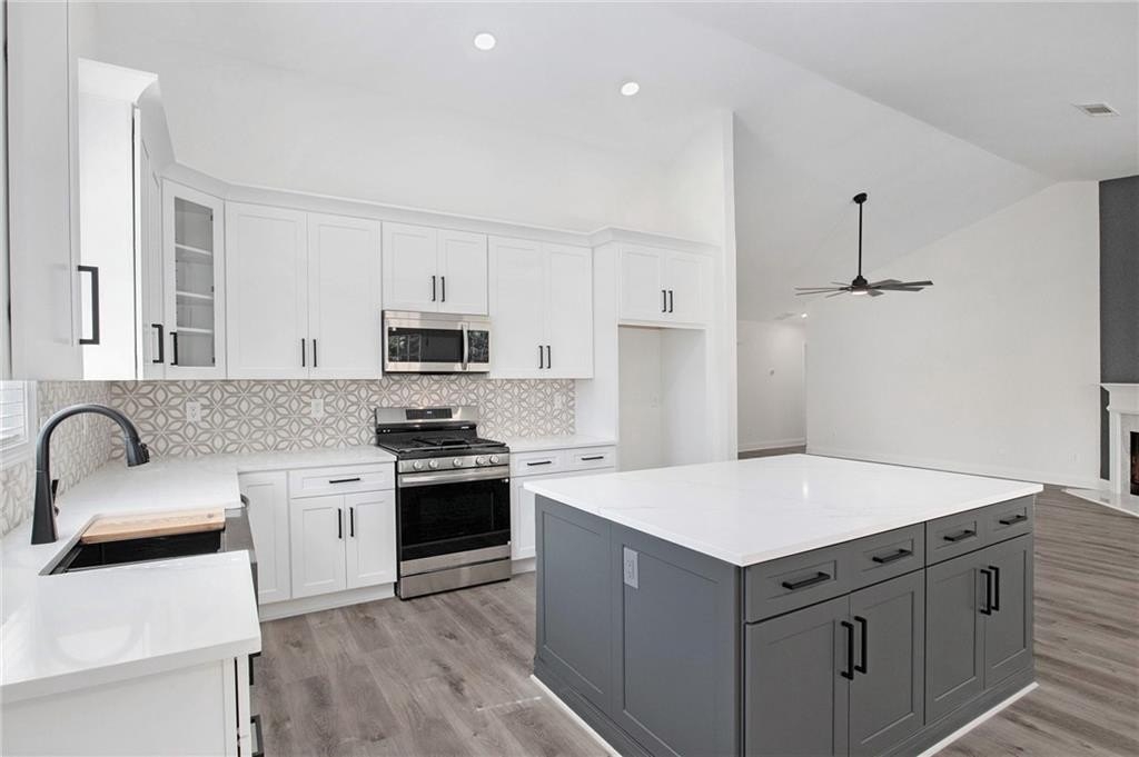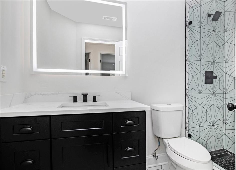 Kitchen: The modern kitchen features brand-new stainless steel appliances, quartz countertops, and custom cabinetry.