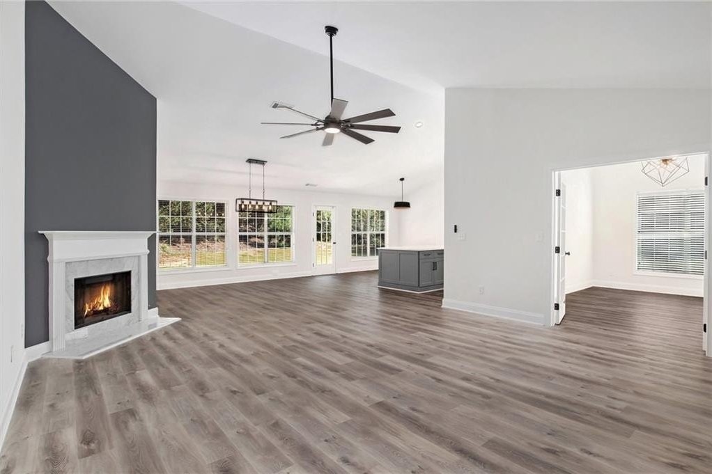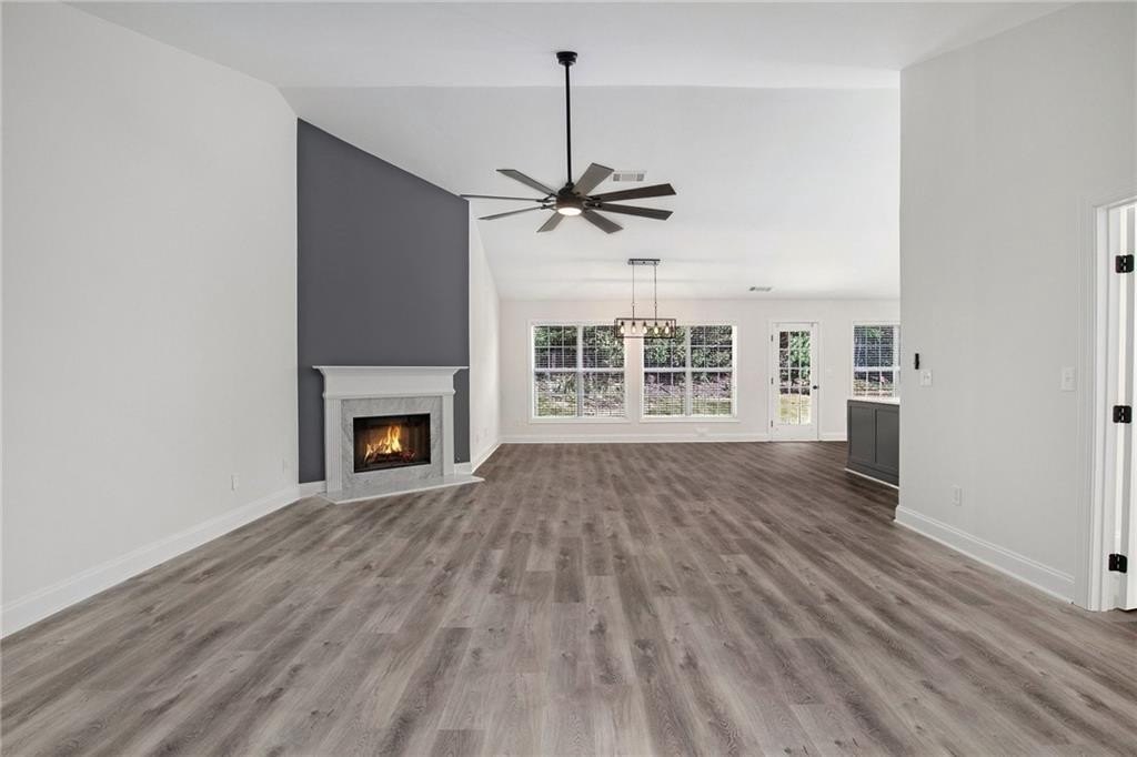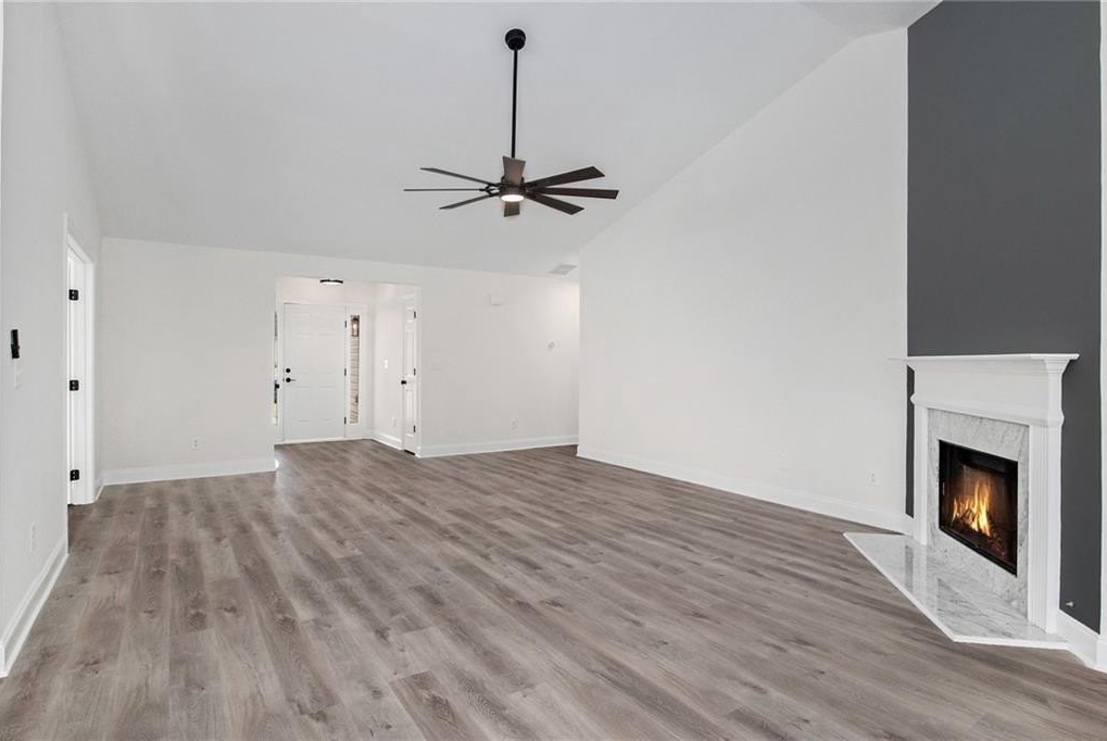 Interior: Step inside to discover an open-concept living space with abundant natural light and high ceilings.