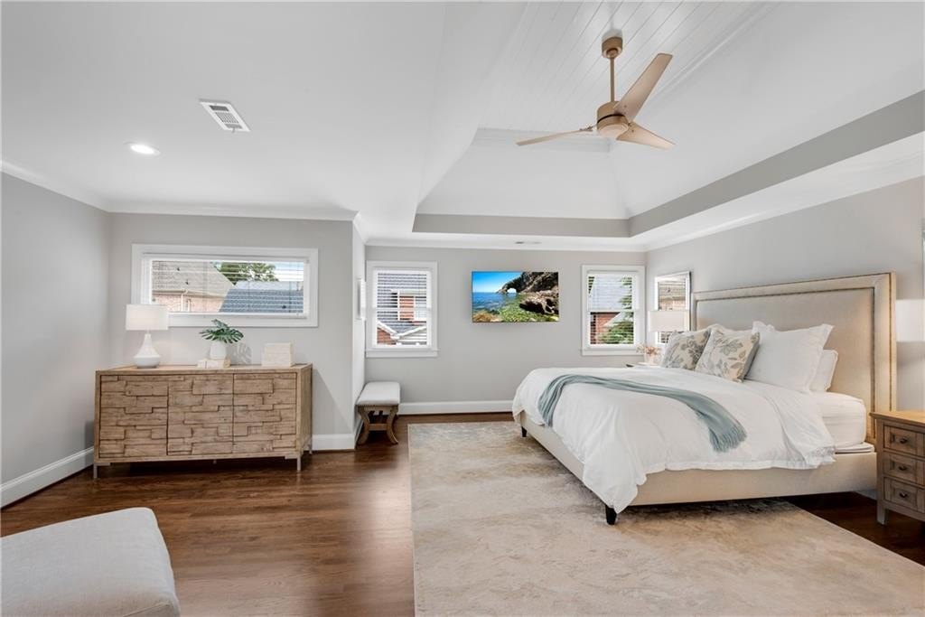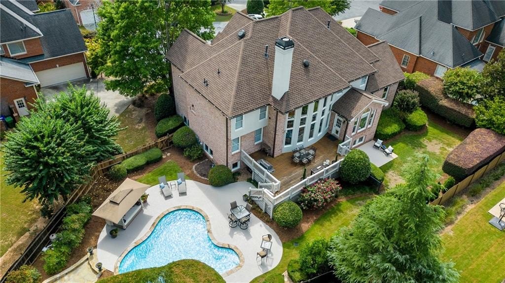 Stunning four-side brick in Dunwoody’s premier community. Welcome to the best home in the most sought-after gated neighborhood in the heart of Dunwoody. This exquisite residence combines timeless elegance with exceptional functionality and space — perfect for both everyday living and grand-scale entertaining. Boasting six spacious bedrooms (including a guest suite on the main level) and five full bathrooms, this home offers refined luxury throughout. The expansive chef’s kitchen is the true heart of the home, showcasing a dramatic Shiplap ceiling, high-end appliances (including a six-burner Thermador cooktop and paneled refrigerator), and an oversized high-end quartzite island with seating for six. It flows seamlessly into the breathtaking two-story great room with floor-to-ceiling stacked-stone fireplace, and where soaring windows provide sweeping views of the private backyard and sparkling swimming pool. The main level also includes a formal dining room, a dedicated office and a welcoming guest suite. Upstairs, the generous primary suite offers a sitting area, a a spa-like bathroom with oversized shower and inviting soaking tub, and large his/her custom closets. Three additional bedrooms and two full baths — including a Jack-and-Jill — complete the upper level. The fully finished terrace level is an entertainer’s dream, featuring a large second living/media area, fabulous game room, exercize room or bedroom with full bathroom, a second kitchen and a workshop. Step outside to a beautifully landscaped, fully fenced backyard with a Gunite pool (gas line in place for heating), expansive deck, and a private firepit lounge — the perfect place to unwind with an evening drink. Additional features include a three-car garage, large laundry room with sink and proximity to top-ranked schools — just a short walk to award-winning Vanderlyn Elementary and Dunwoody High. Enjoy easy access to Dunwoody Village, Brook Run Park, Marcus Jewish Community Center, Dunwoody Nature Center and Perimeter Mall. Join any of Dunwoody's popular swim/tennis clubs. This is Dunwoody luxury living at its finest — don't miss this rare opportunity.
