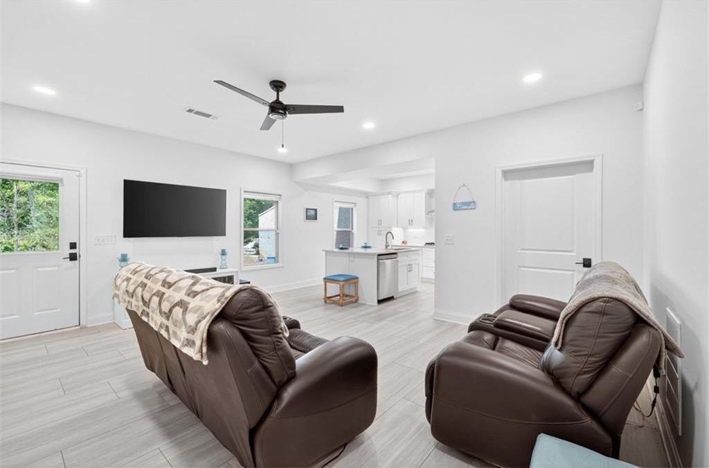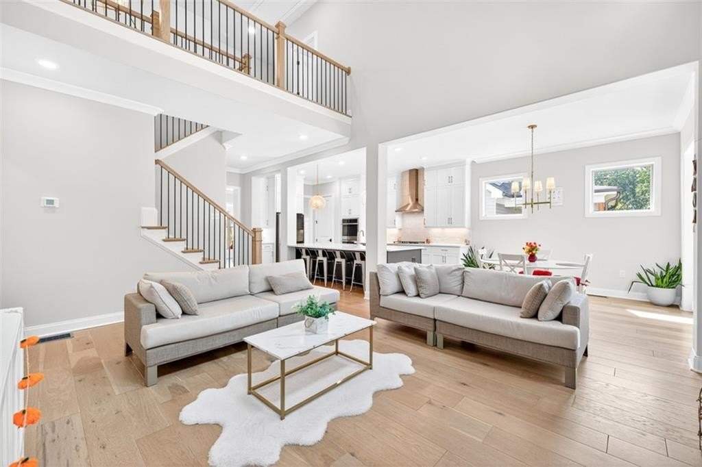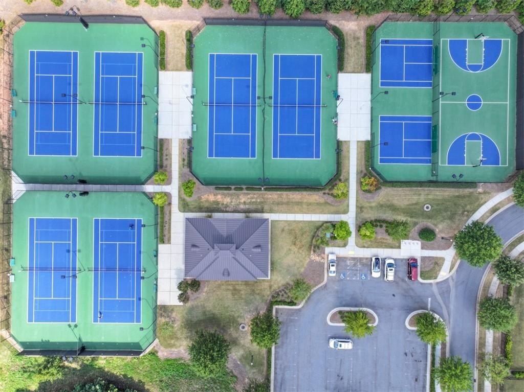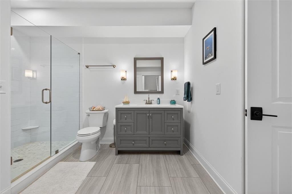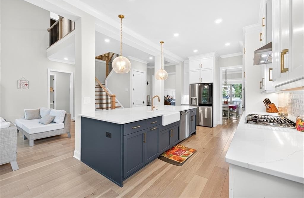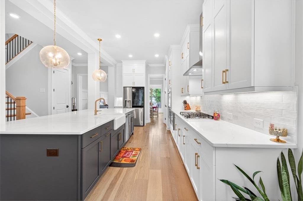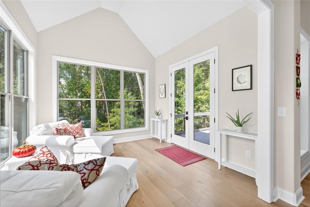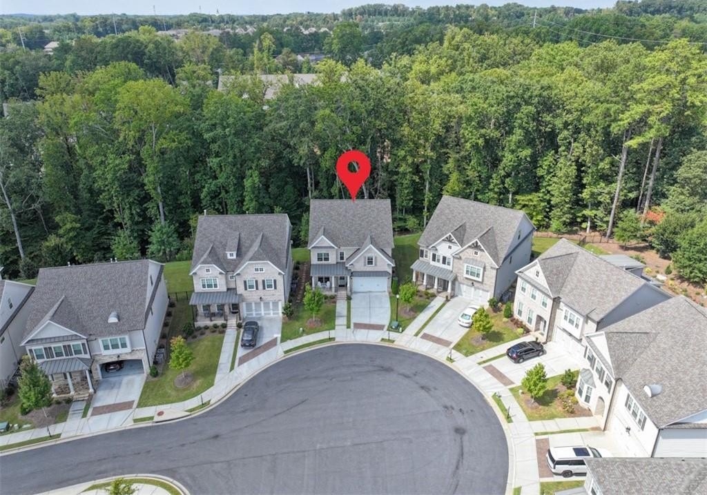 Experience guard gated luxury living in the prestigious Bellmoore Park, within the award-winning Northview High School district, nestled at the end of a very large and peacefully secluded CUL-DE-SAC. Enjoy beautiful morning sunrises on the charming covered front porch in this EAST FACING home that is directly across from an open green space park equipped with additional guest parking spaces. The backyard of this premium BASEMENT LOT opens up to an enchanting private wooded area that leads to the tranquil Cauley Creek. Main level features a 2 story family room boasting a window wall providing an abundance of NATURAL LIGHT that illuminates the OPEN CONCEPT living space plus hardwood floors on the entire main level and upstairs hallway. Elegant kitchen with SS appliances, Luxe Gold finished hardware, oversized 10-foot quartz slab island, gorgeous premier light fixtures, white porcelain Farmhouse Sink, double ovens, and a 5-burner gas cooktop. Retreat to the cozy and bright SUNROOM that gives panoramic views of the backyard leading out onto the DECK. GUEST BEDROOM WITH FULL BATH are also included on the main level. Upstairs features EXTRA LARGE MASTER SUITE, his and hers separate expansive walk-in closets, fully tiled shower with bench, his and hers vanity, and large soaking tub. 2 additional Bedrooms with full baths are on the second floor with 1 Bedroom that comes with an EN SUITE bathroom and walk-in closet for ultimate privacy and convenience. Laundry room, with sink, is perfectly placed on the second floor for ease and practicality. Fully finished IN LAW SUITE basement is the ideal multi generational living space for your loved ones. Providing a full kitchen with island, bedroom, full bathroom, laundry room, exercise room, TV room, and plenty of storage. Deep set Garage features ample storage space with additional storage in the attic. All landscaping and lawn care are included in the HOA dues, Community amenities include clubhouse, fitness center, junior Olympic, kiddie, and splash pad pools, six tennis courts, basketball, playgrounds, open grass areas, and private sitting areas. The home is just a few miles from Johns Creek’s newest and largest “Cauley Creek Park” including six pickleball courts, and very close to the new mixed-use retail, shopping, restaurants, entertainment, 43-acre Town Center "Medley" and Technology Park.