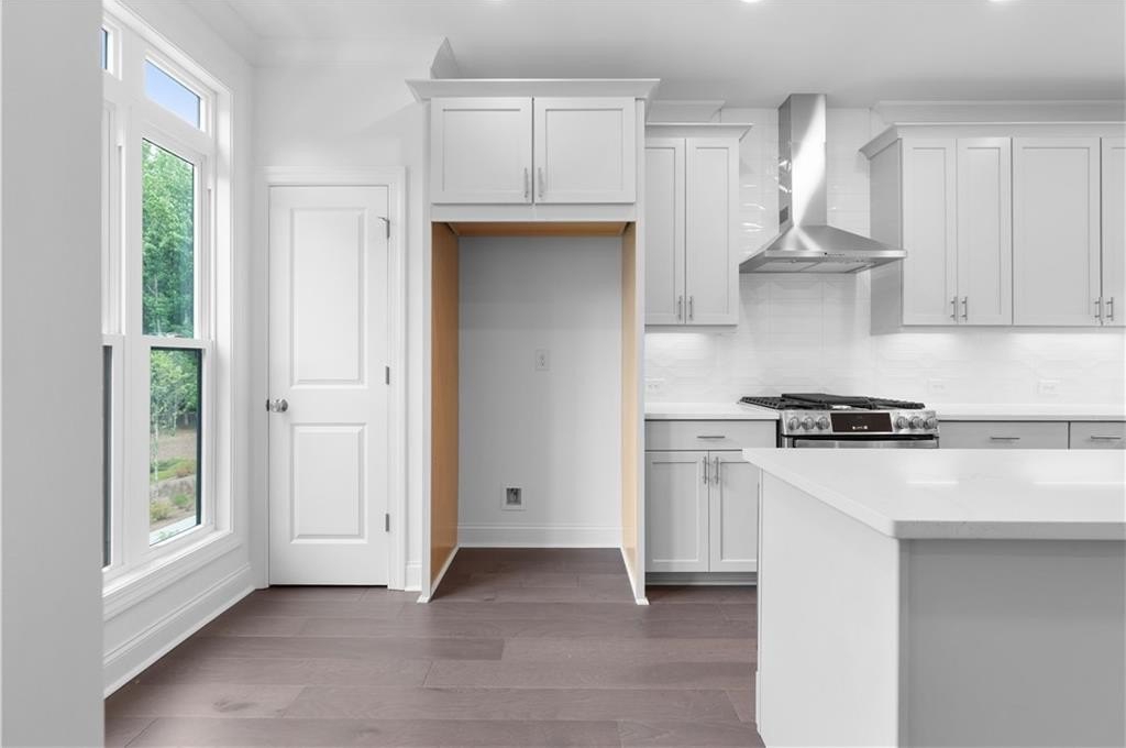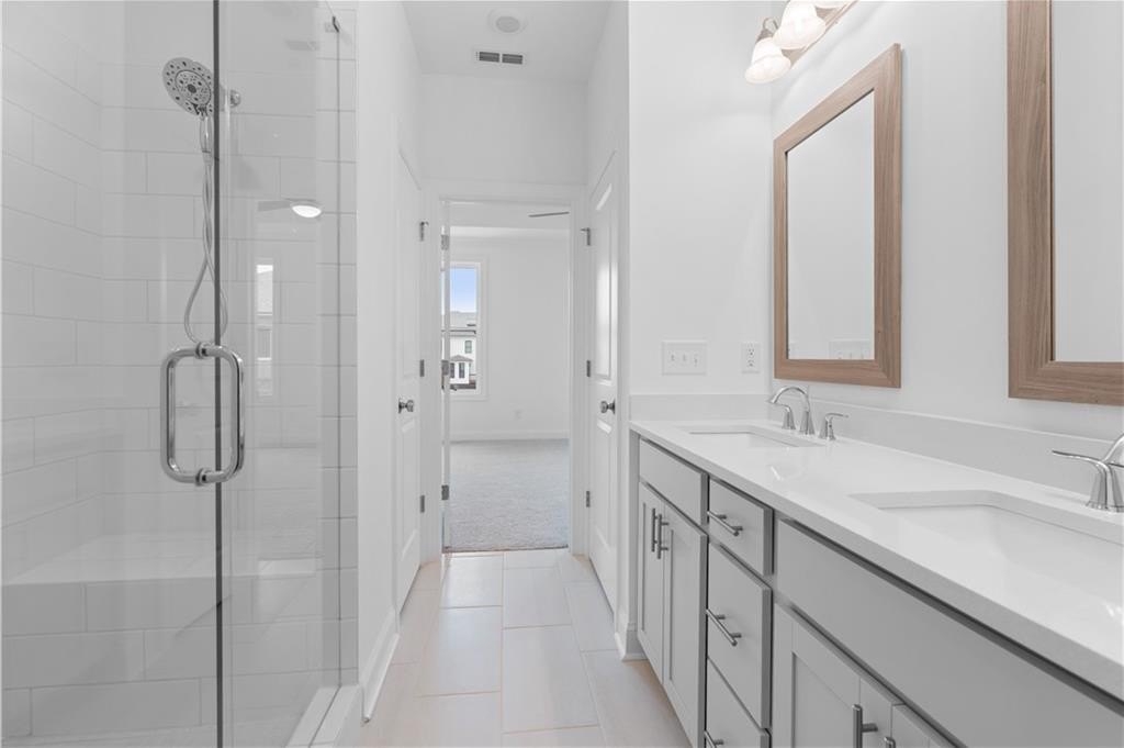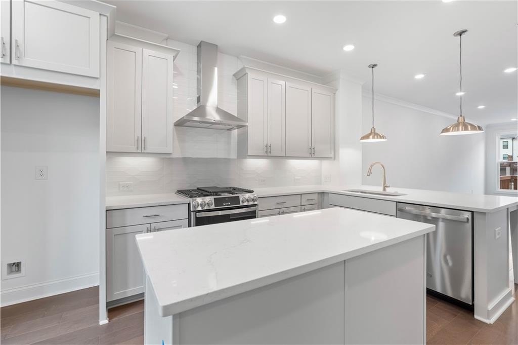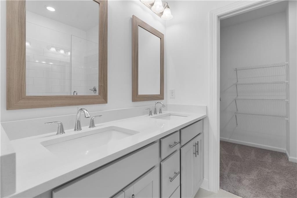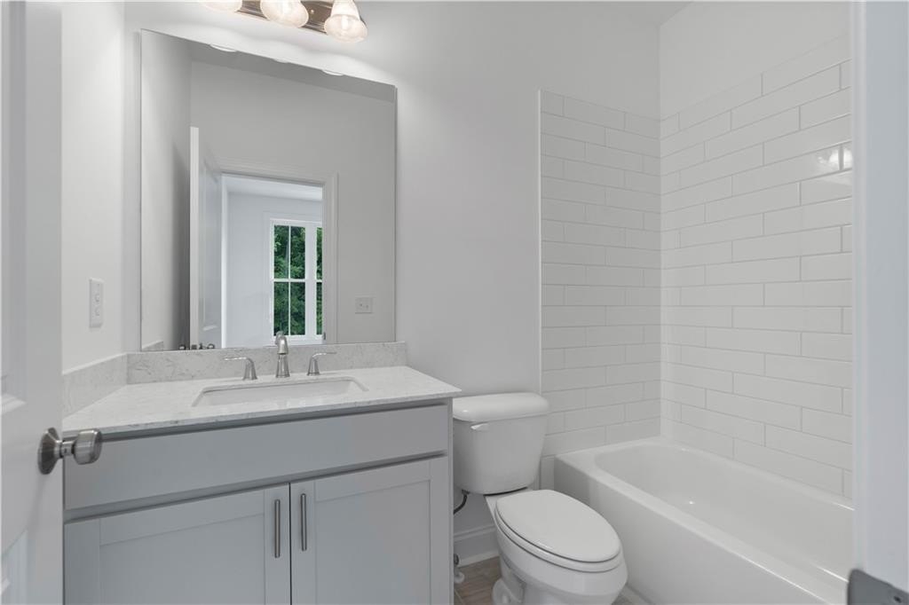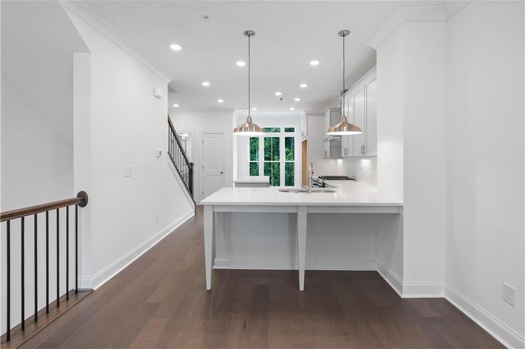On the main level, you’ll find a bright and spacious open-concept living area, seamlessly connecting the family room, dining area, and kitchen. The kitchen is a true standout, featuring: 42" full overlay upper cabinets with soft-close doors and drawers with Elegant crown molding ~ Striking Calacatta Lavasa quartz countertops ~ Stylish tile backsplash ~ Premium GE stainless steel appliances. Upstairs, the primary suite offers a serene retreat, complete with tray ceilings, a generous walk-in closet, and a beautifully appointed en-suite bath with dual vanities and a walk-in shower. The secondary bedroom is conveniently located near the laundry closet and a well-designed private bathroom. This home combines comfort, style, and natural beauty — a perfect blend for modern living. One-car Garage with a Charger Station, extra storage space, and a driveway for an extra parking spot. Additional parking spaces can be found throughout the community. WALKABLE to endless restaurants and shopping centers, dental, medical, bank and fitness facilities and just a short trip to coveted Avalon and Downtown Alpharetta areas. The community features a landscaped wooded area, dog-friendly with pocket green spaces and offers a vibrant vibe. Great opportunity to own in Alpharetta. Virtual Tour of previously built Barnsley plan. [The Barnsley I]